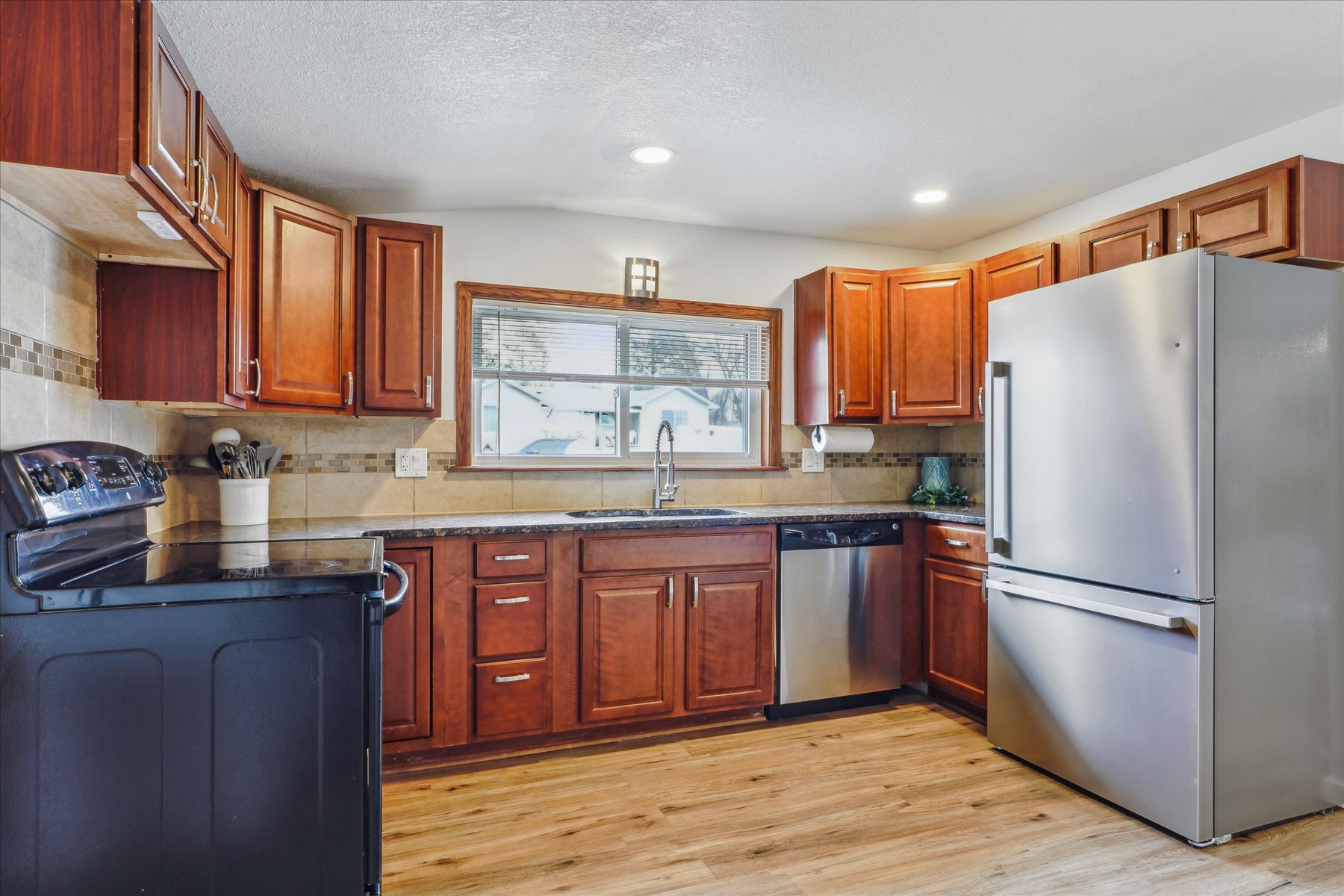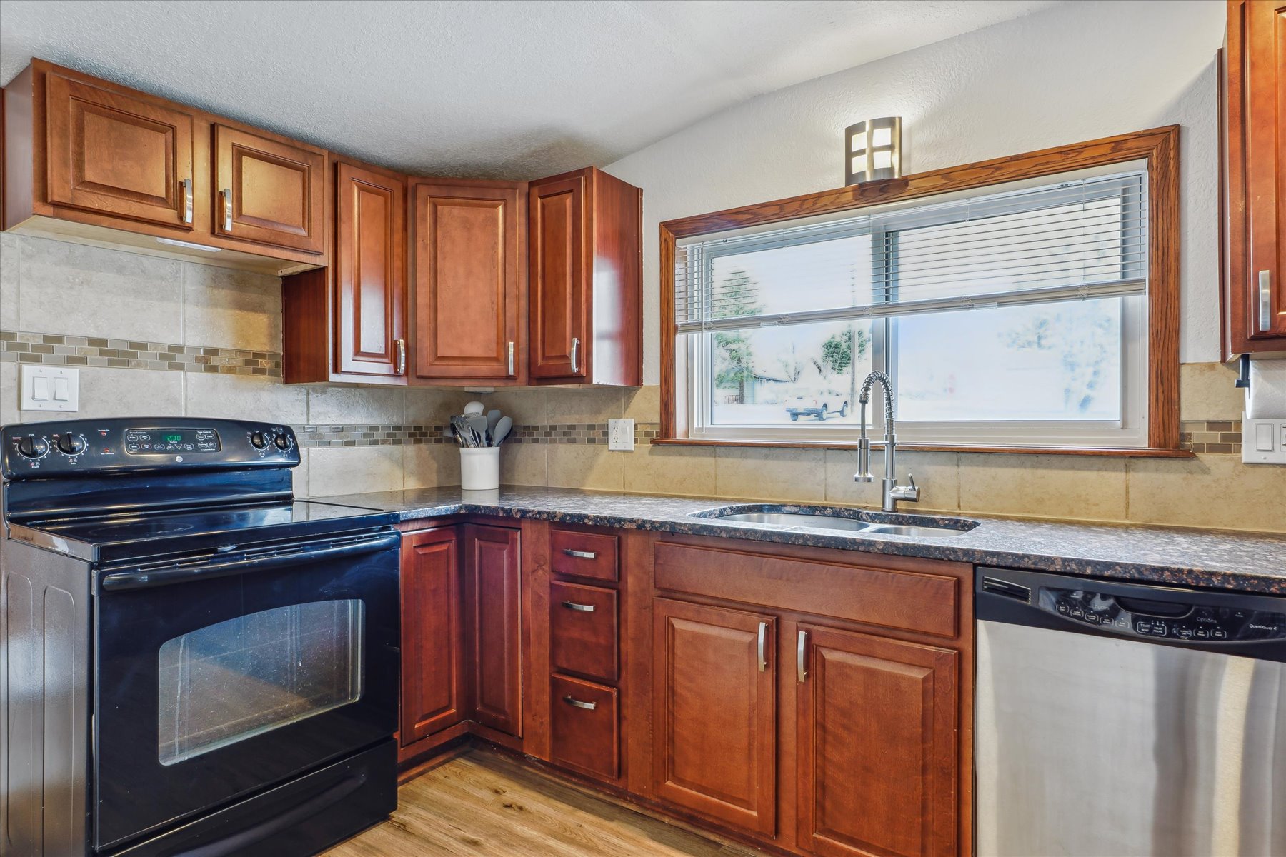 ** Updated and Spacious on a Corner Lot in Elizabeth - this home with 6 bedrooms in 3,874 square feet deserves a look ** Sellers have thoughtfully updated this home in a multitude of ways, please see the list in Supplements ** The main floor living area is open, bright and welcoming for family and friends with fresh paint and updated lighting ** The kitchen has newer appliances, granite counters and wood cabinets as well as convenient access to the stairs, and side entry ** Three secondary bedrooms are on the main floor, along with an updated full bath ** The primary suite is a separate oasis with direct access to the deck, plentiful natural light, room for a seating or desk area and an ensuite bath ** The new Anderson sliding door (2023) makes it easy to enjoy the deck which runs along the back of the home and has stairs to the expansive yard ** Sellers have installed fencing in the back yard (2024), perfect for pets or small children, while still able to bring vehicles in via the double gate ** Through the kitchen is the mud room with built-in storage cabinets, the side entry door, and stairs to the basement ** The garage is accessible from the basement and can be reached through a double gate in the fence ** There is a dedicated storage room or work shop across from the garage entry ** Two non-conforming bedrooms are next and a kitchenette area, just the spot for a refrigerator and microwave ** A good-sized family room is at the end of the hall, with windows on two walls and an adjacent full bath ** Or use the basement as it is as a guest suite or In-Law Apartment ** Home is close to schools, shopping and dining and across the street from a park with a playground ** CO-86 E is a few blocks away for quicker commuting ** Recent updates include: Refrigerator (2025), Roof (2024), Exterior Fencing (2024), Washer & Dryer (2024), Whole House Attic Fan (2024), Anderson Sliding Door (2023) ** Check out this great home and set a showing today!