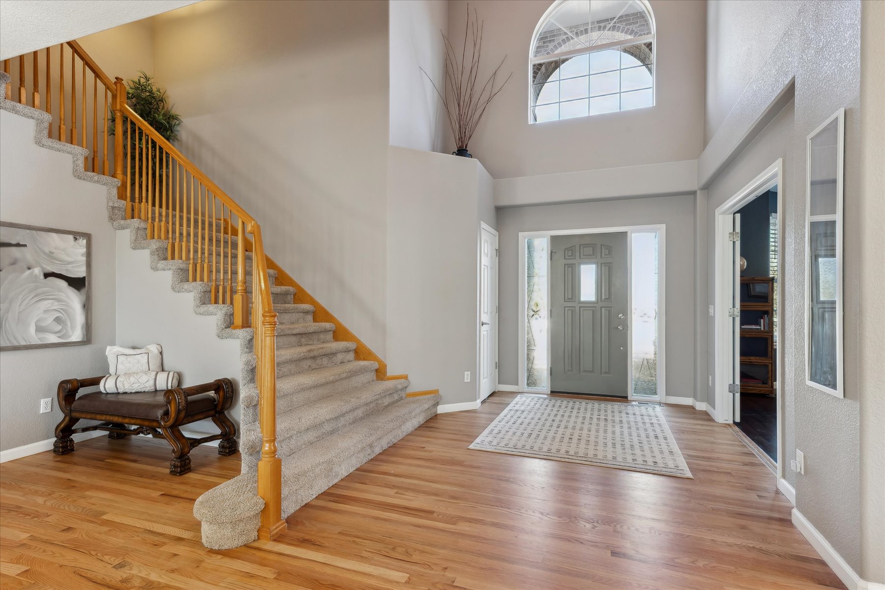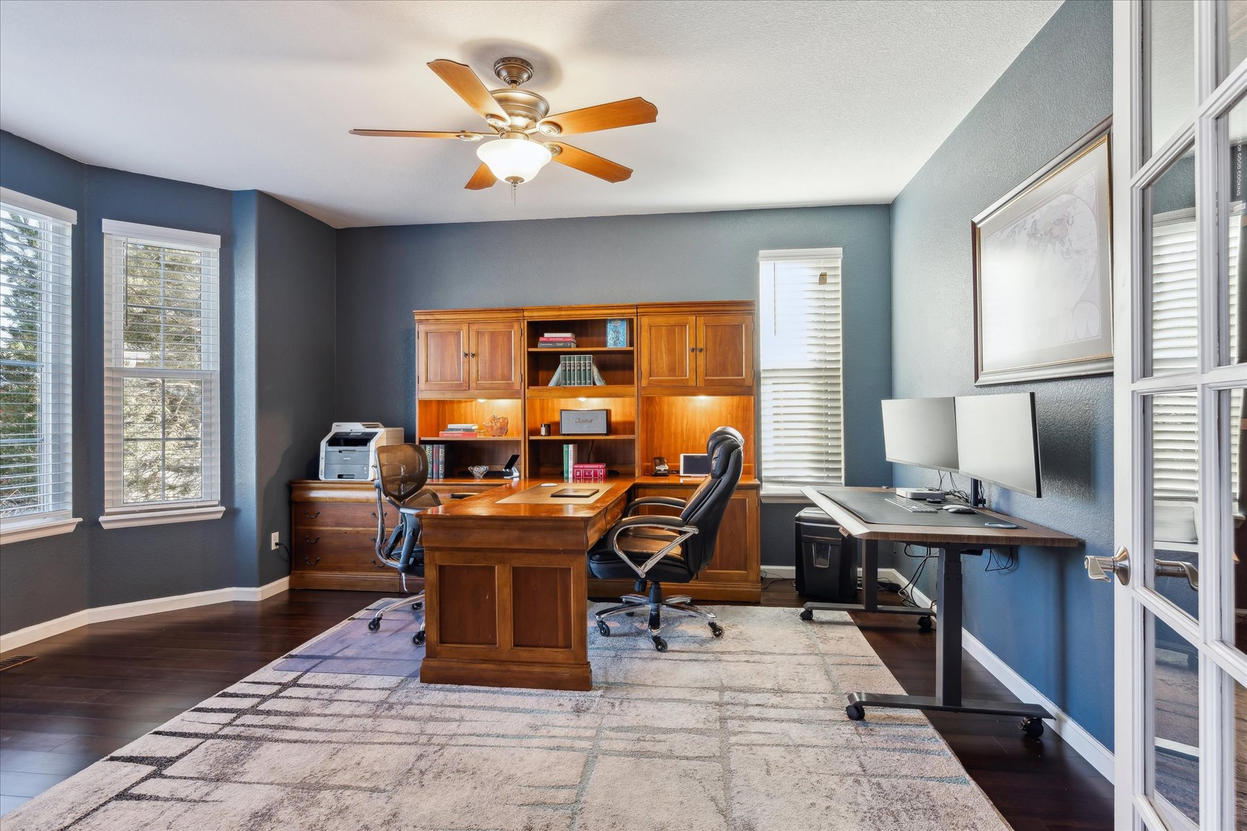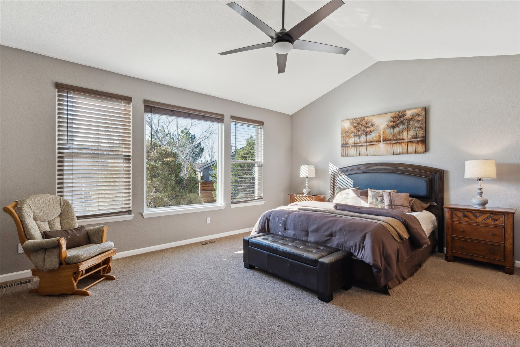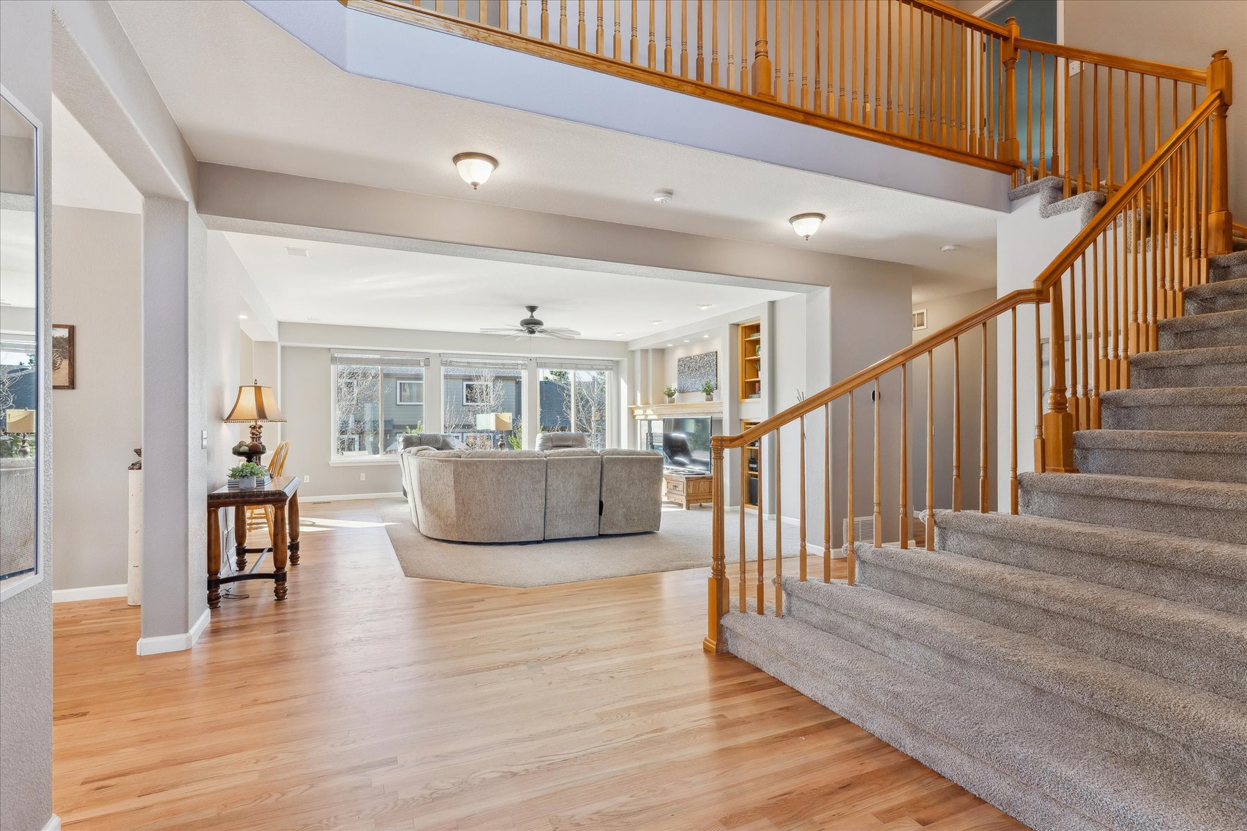 ~ Beautiful 5 Bed + 4 Bath Home in the Red Hawk Neighborhood ~ This home is in a Cul-de-sac with Easy Access to all that Castle Rock has to offer including Schools, Parks, Trails, Shopping and Entertainment ~ The foyer draws you in with tall ceilings, wood floors and french doors which open to a spacious private office ~ A formal dining room with wood floors and direct access to the kitchen is across from the grand staircase, and the house opens up into the welcoming living room and kitchen ~ A statement fireplace along one wall has a mantle and built-in shelves, while windows bring in natural light and allow views to the patio and yard ~ This space is open to the updated kitchen with room for one cook or many, all while enjoying quick access to the patio ~ The fully fenced yard wraps around the home providing lovely landscaped views from side windows and the patio is the place to dine or entertain, or to enjoy the best of Colorado weather ~ A desirable main floor primary bedroom is a quiet sanctuary with a vaulted ceiling and windows overlooking the rear of the home ~ The ensuite bathroom includes a walk-in closet, two sinks and loads of counter space and storage ~ The welcoming and airy feel of this home continues on the upper level with a total of 4 generously sized bedrooms on this floor ~ Bedrooms 2 and 3 share a full bath with dual sinks and a separate door to the tub and toilet ~ The 4th and 5th bedrooms are close to the roomy hall bath ~ Friends and family have space to spread out for fun and games in the bonus room, or maybe use it as a movie theater ~ This home has a 3-car attached garage, paid-in-full solar panels, a roomy unfinished basement for a future finish plus a crawl space for storage ~ Recent upgrades include: Exterior Paint (2025); Refinished Hard Wood Floors (2024); New Triple Pane Windows (2019), Roof (2017), Hot Water Heater (2023); New Baseboards, Trim and Solid Wood Interior Doors ~ Check out this home and set your showing today!