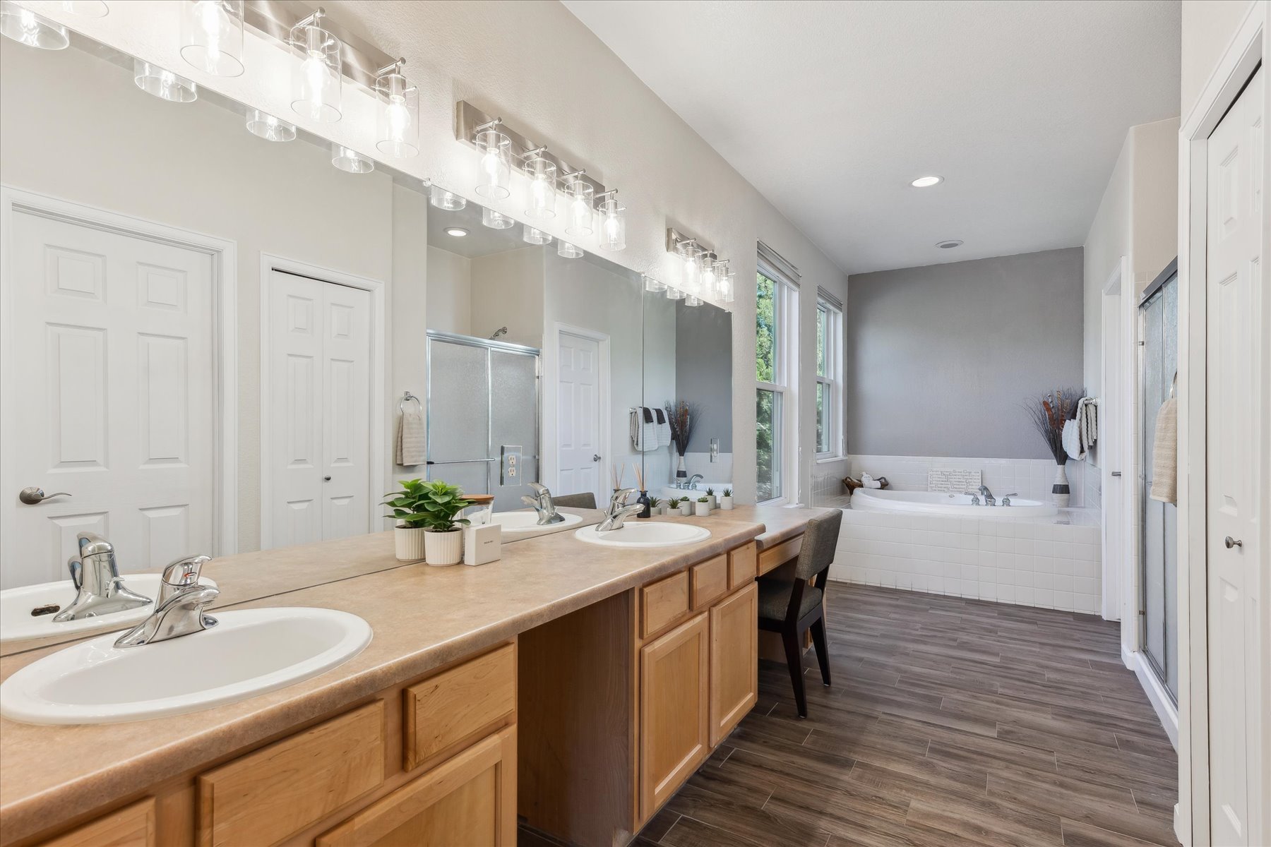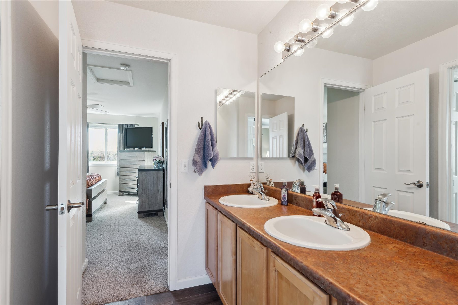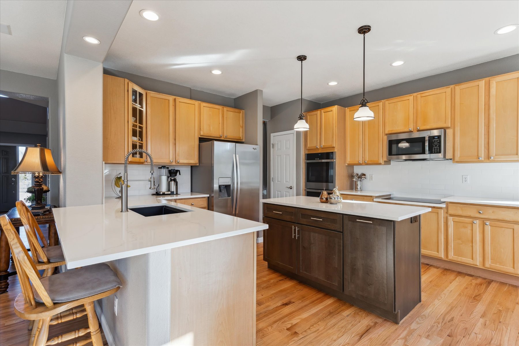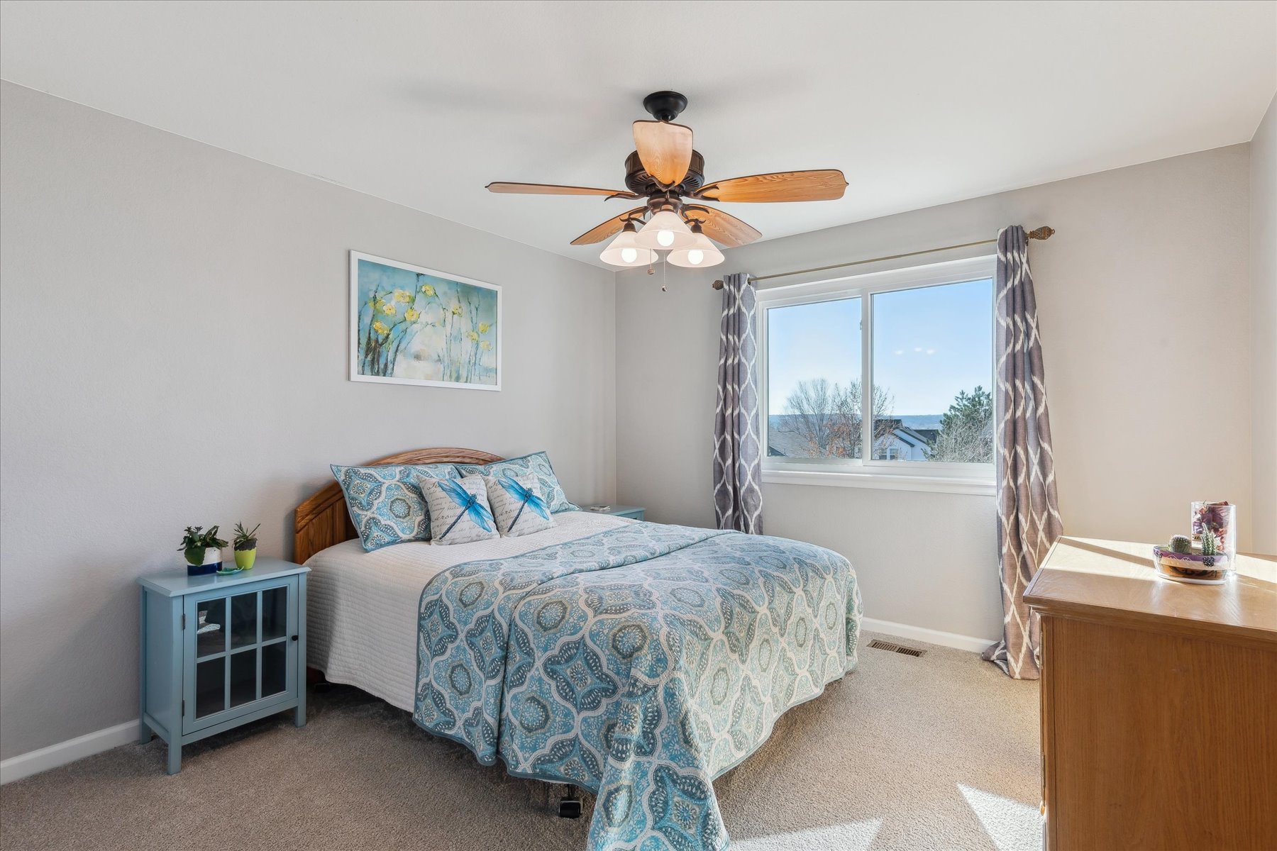 ~ Beautiful 5 Bed + 4 Bath Home in the Red Hawk Neighborhood ~ This home is in a Cul-de-sac with Easy Access to all that Castle Rock has to offer including Schools, Parks, Trails, Shopping and Entertainment ~ The foyer draws you in with tall ceilings, wood floors and french doors which open to a spacious private office ~ A formal dining room with wood floors and direct access to the kitchen is across from the grand staircase, and the house opens up into the welcoming living room and kitchen ~ A statement fireplace along one wall has a mantle and built-in shelves, while windows bring in natural light and allow views to the patio and yard ~ This space is open to the updated kitchen with room for one cook or many, all while enjoying quick access to the patio ~ The fully fenced yard wraps around the home providing lovely landscaped views from side windows and the patio is the place to dine or entertain, or to enjoy the best of Colorado weather ~ A desirable main floor primary bedroom is a quiet sanctuary with a vaulted ceiling and windows overlooking the rear of the home ~ The ensuite bathroom includes a walk-in closet, two sinks and loads of counter space and storage ~ The welcoming and airy feel of this home continues on the upper level with a total of 4 generously sized bedrooms on this floor ~ Bedrooms 2 and 3 share a full bath with dual sinks and a separate door to the tub and toilet ~ The 4th and 5th bedrooms are close to the roomy hall bath ~ Friends and family have space to spread out for fun and games in the bonus room, or maybe use it as a movie theater ~ This home has a 3-car attached garage, paid-in-full solar panels, a roomy unfinished basement for a future finish plus a crawl space for storage ~ Recent upgrades include: Exterior Paint (2025); Refinished Hard Wood Floors (2024); New Triple Pane Windows (2019), Roof (2017), Hot Water Heater (2023); New Baseboards, Trim and Solid Wood Interior Doors ~ Check out this home and set your showing today!
