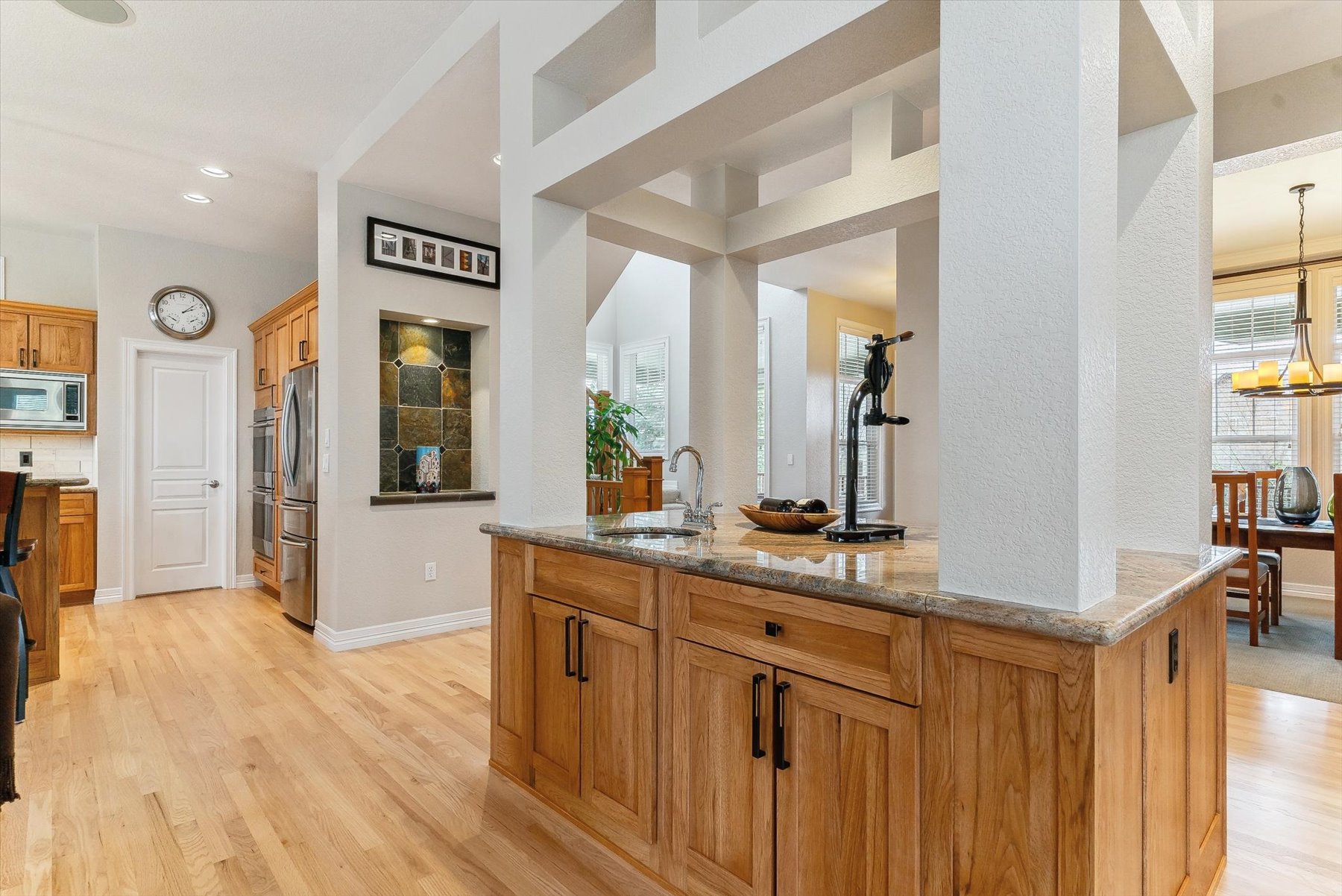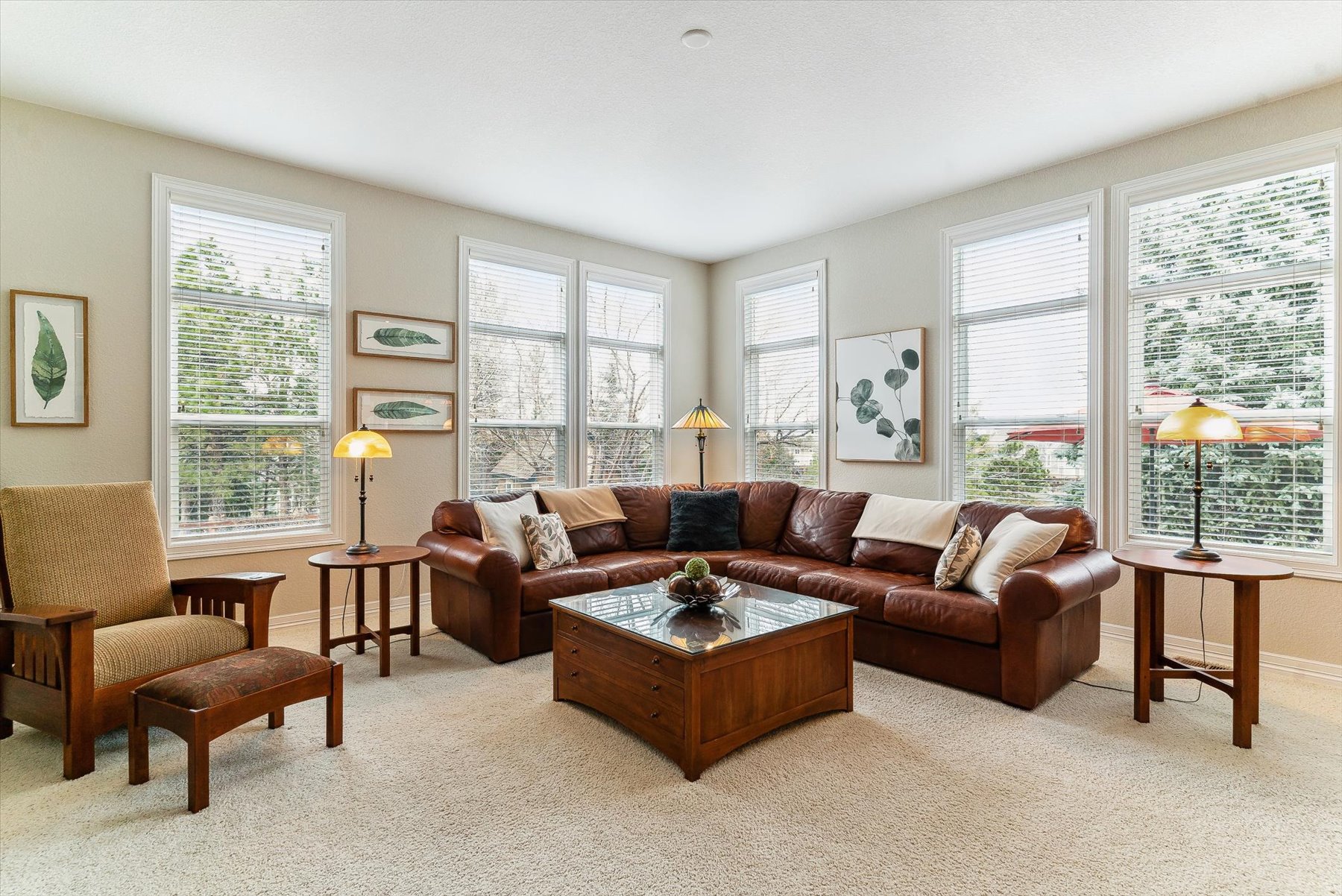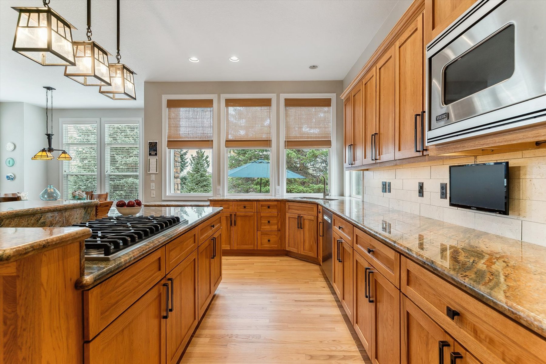 * Nestled at the End of a Cul-de-sac, is this Stunning Home in the Craftsman Style * Seller has impeccably maintained and lovingly updated this home which features 4 Beds + 4 Baths + Main Floor Office * The stamped concrete walk leads to the covered front deck (truly more than an ordinary porch) which wraps around to the side patio with firepit * Constructed with stone columns and Ipe wood decking, it sets the tone for this lovely, welcoming home * Through the custom door is a foyer which opens to the dining room, a grand staircase, and into the gorgeous kitchen * Details, such as large windows, gleaming hardwood floors, high-end finishes & surround sound follow you through the home * The kitchen has an adjacent seating area on one side of the statement 2-sided gas fireplace complete with hearth and mantle * A sunny dining space has lovely views & access to the back yard, spacious patio & open space beyond * The gourmet kitchen has upgraded appliances, slab granite counters and a walk-in pantry - everything a serious chef could want * The living room is on the other side of the fireplace and is a comfortable space to converse * A light-filled dedicated office is nearby, with glass doors - note the transom above - for privacy * Steps away is the roomy laundry room with included washer & dryer * Up the grand staircase is the loft, a perfect place for kids to play, study or watch TV, with built-in storage and desks * Double doors lead to the primary suite, complete with a updated 5-piece bath, windows with views of the open space, 2 walk-in closets and an accent wall * Also on this level are three secondary bedrooms, each bright & individually appointed, and 2 additional full bathrooms * Be sure to check out the basement, unfinished but well utilized as work & crafting space, as well as the beautiful outdoor living spaces * Recent updates include: re-finished hardwood floors, custom front door, exterior paint, stamped & stained patios * Set your showing today!