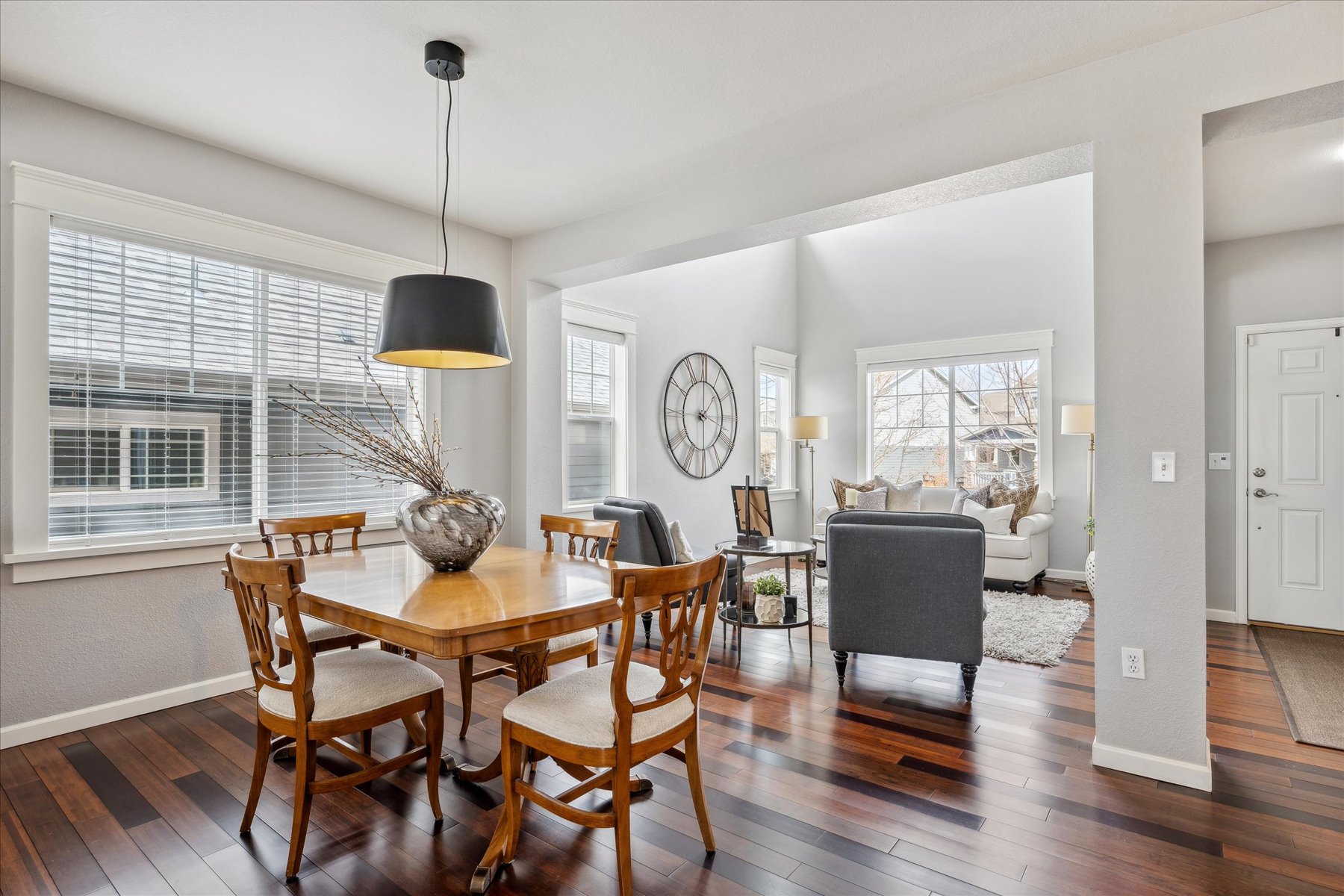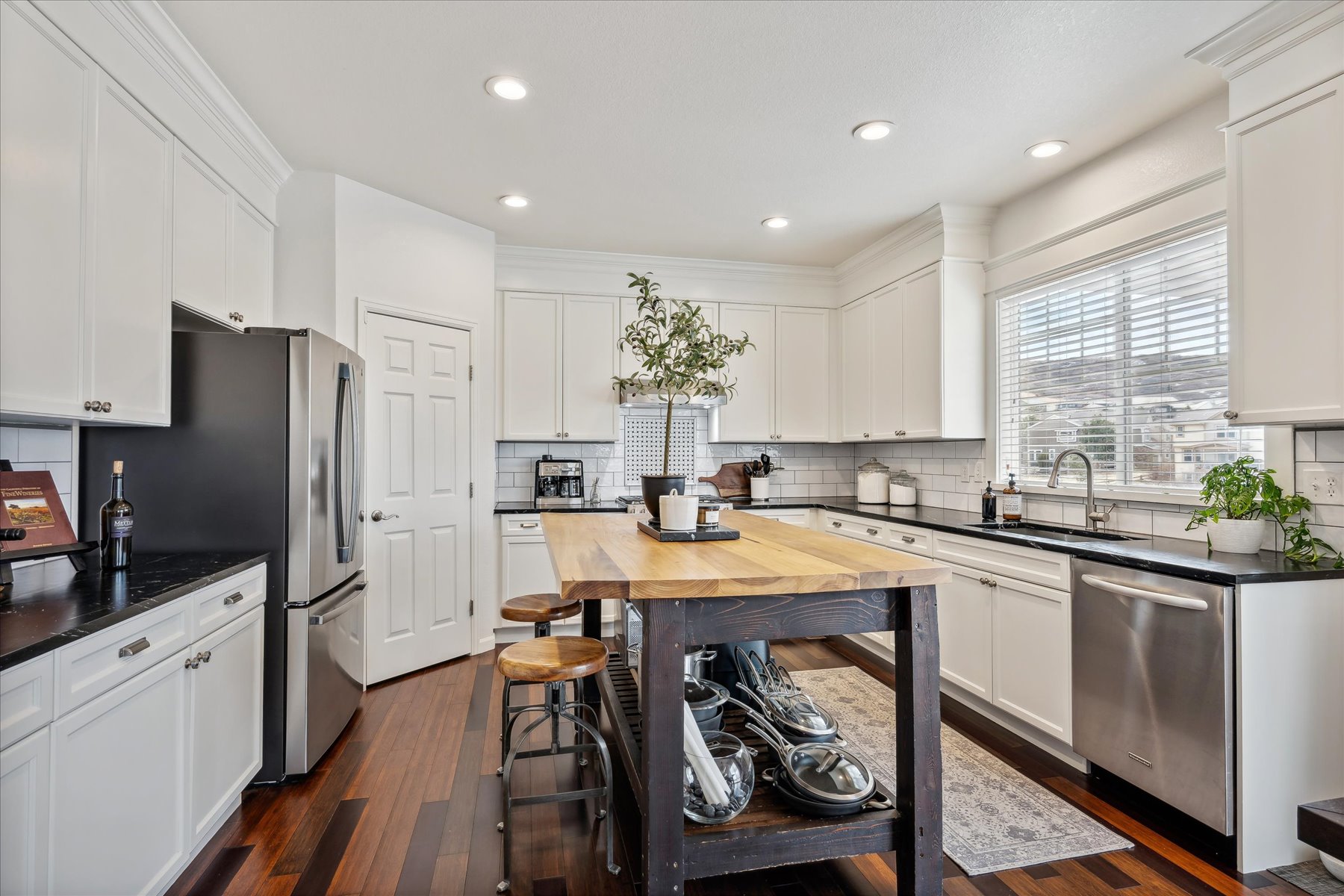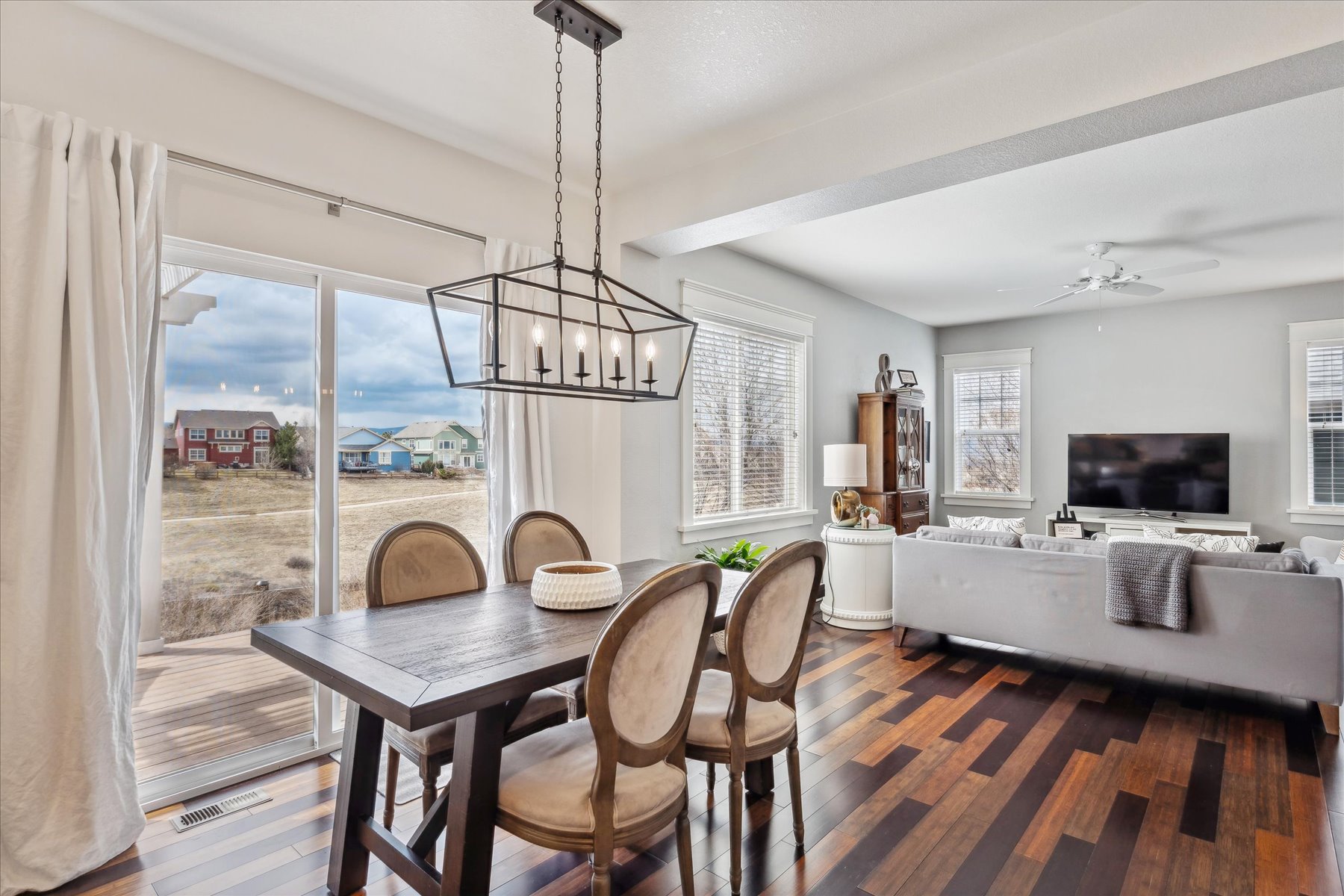 ** Must See Move-In Ready Home in Feathergrass neighborhood of The Meadows, with 4 Beds & 3 Baths and Backs to Open Space ** A former model home, this property has gorgeous updates by these sellers whose attention to detail and sense of style is evident throughout ** An open main floor layout allows views to the open space from the front door ** The Living Room has soaring ceilings and clerestory windows with remote controlled blinds ** Bamboo floors on this level lead through the Dining Room, to the Family Room and around the corner to the showpiece of a Kitchen ** Upgraded cabinetry and appliances, along with a rustic island, walk-in Pantry and soapstone counters, make this a beautiful and efficient place to prepare meals ** There is room for a good sized table, access to the updated deck & low maintenance, fenced back yard ** Step out to relax or dine on the newer, two-level deck and enjoy views to the West, access to the trails and wildlife sightings ** Main floor also has a dedicated office space complete with built-in storage, an adorable Laundry Room, and glamorous guest bath ** Upstairs is the Loft, the perfect place to settle with a book or watch a show (television included), with views in several directions ** The Primary Suite is spacious and be sure to enjoy stunning western views from both the bedroom and attached retreat/office space ** Cozy up around the fireplace, use as an office or studio - it is wired for a television ** An updated 5-piece ensuite, walk-in closet with custom built-ins, and space for a beverage bar complete this suite ** There are three additional bedrooms and a roomy full bathroom on this level ** Newer carpet and second HVAC system make this a comfortable level for family and guests ** The basement is unfinished and can be utilized now for storage, work shop or gym, or is ready to have the build out of your dreams, with 5 large window wells ** There is a crawl space for additional storage ** Come see this gem of a home!!