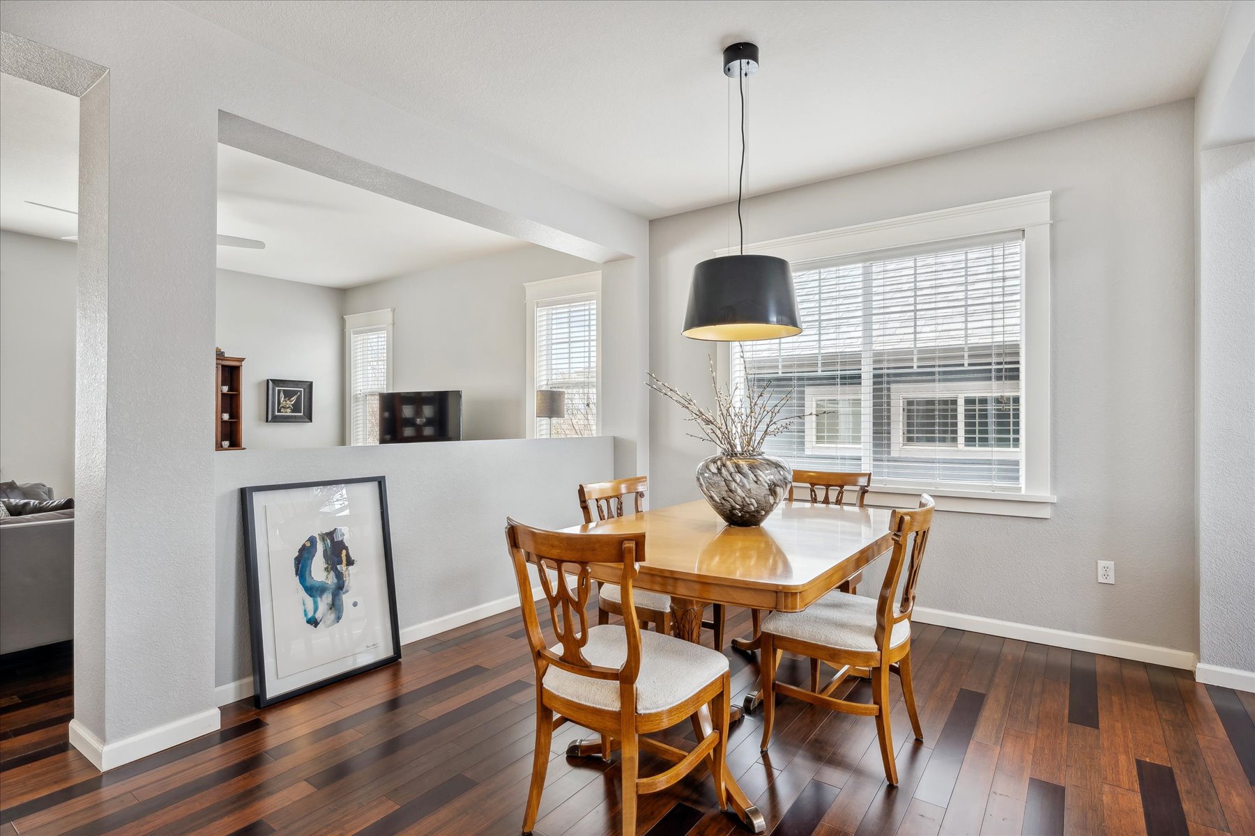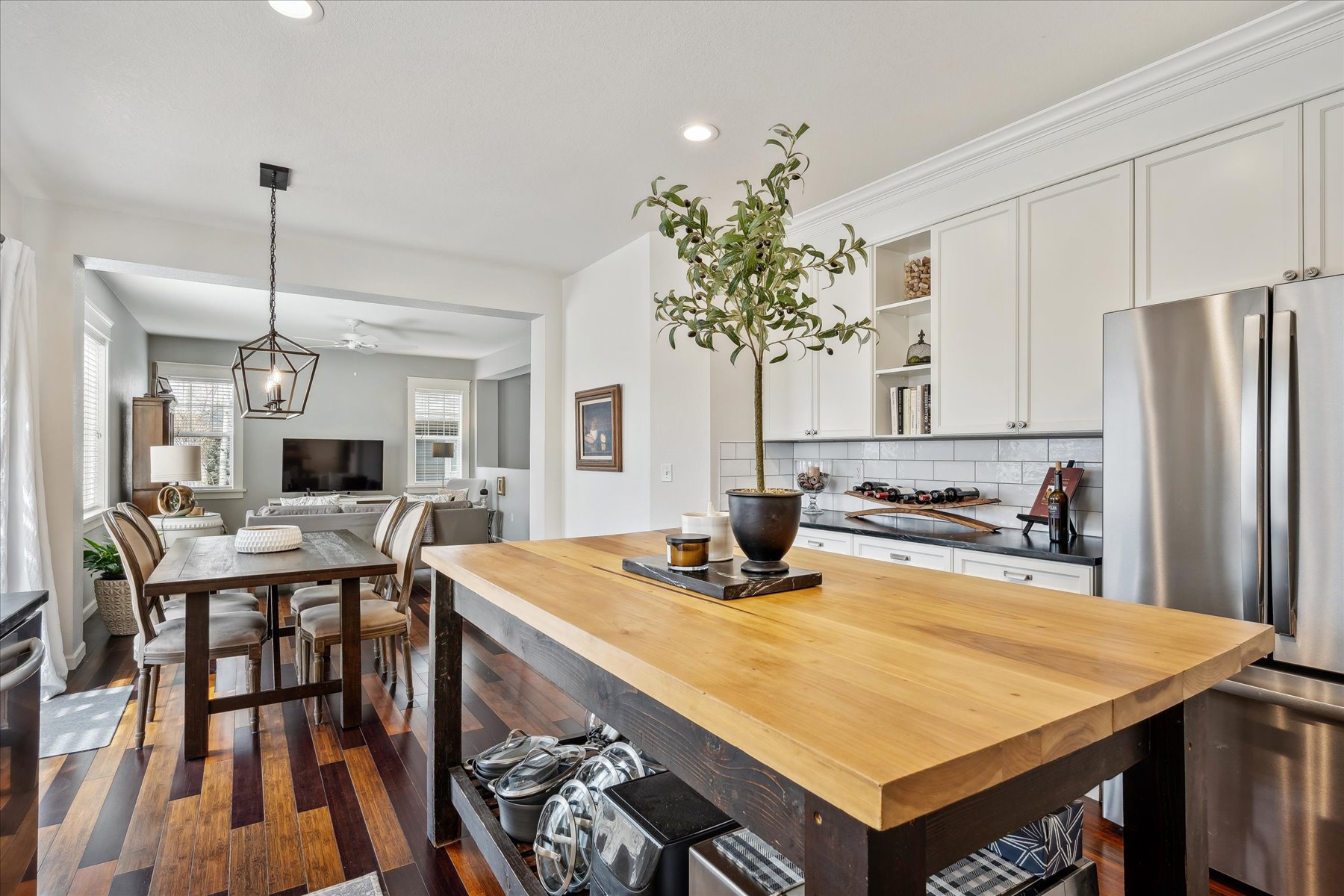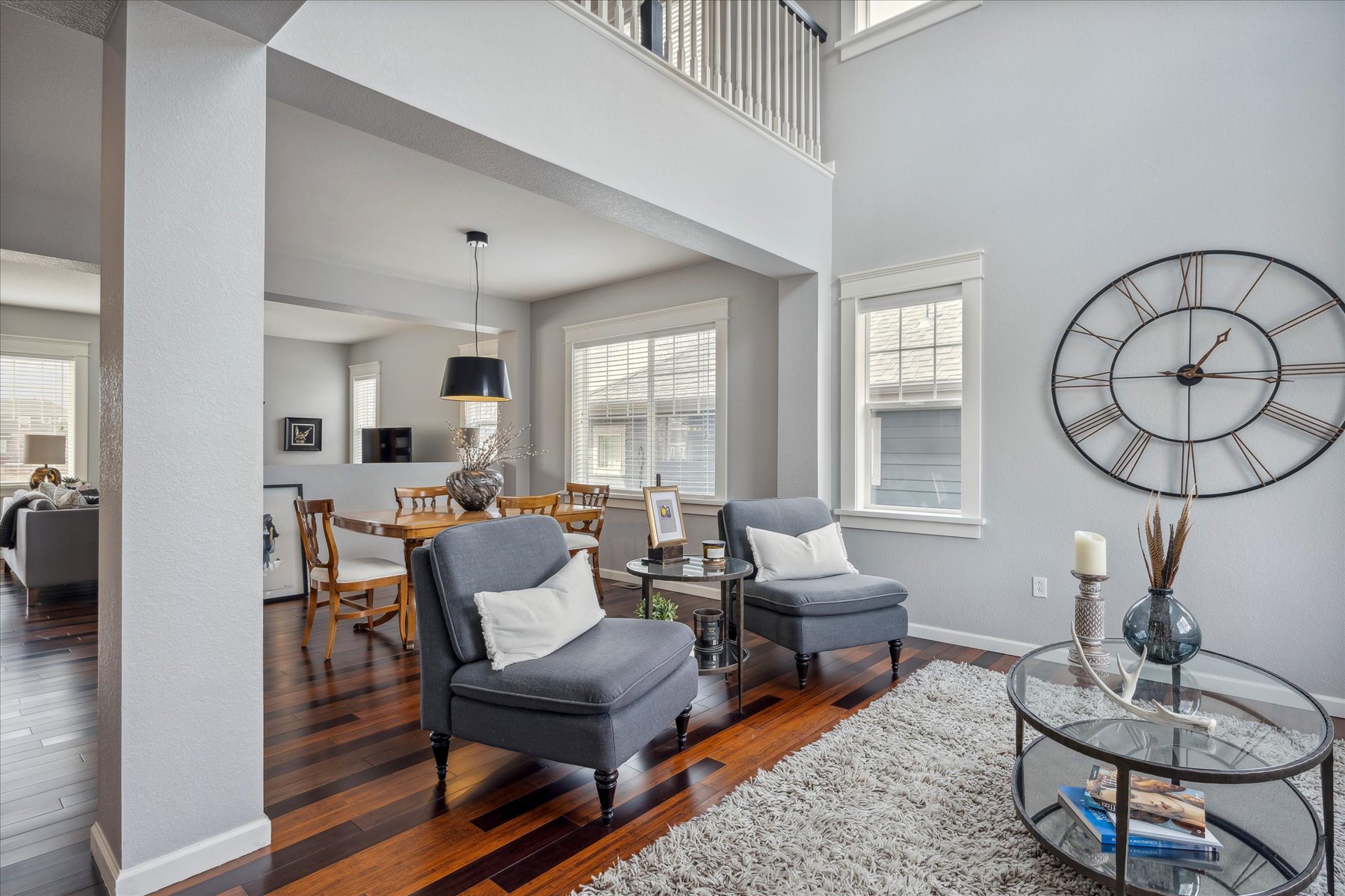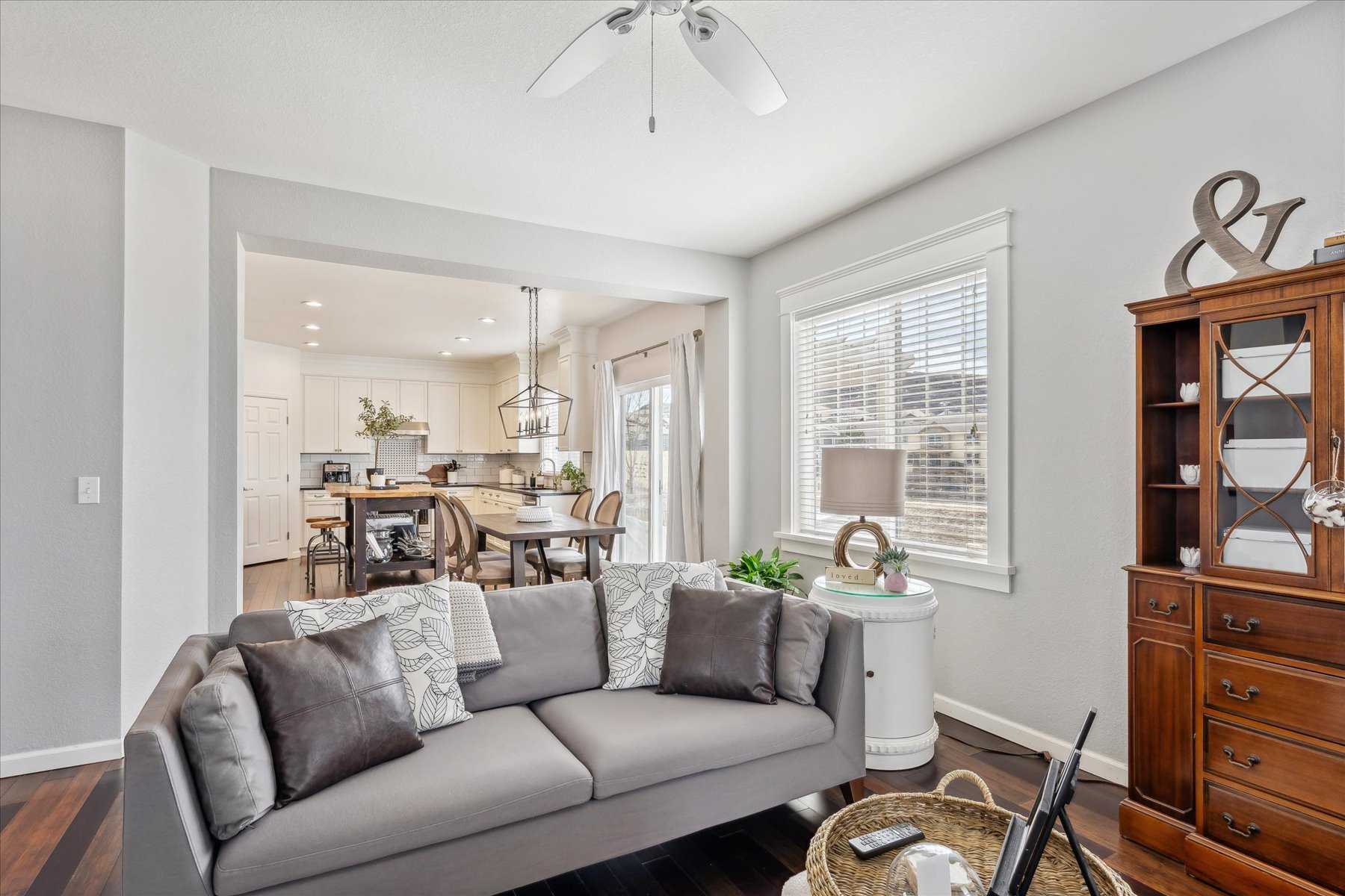 ** Must See Move-In Ready Home in Feathergrass neighborhood of The Meadows, with 4 Beds & 3 Baths and Backs to Open Space ** A former model home, this property has gorgeous updates by these sellers whose attention to detail and sense of style is evident throughout ** An open main floor layout allows views to the open space from the front door ** The Living Room has soaring ceilings and clerestory windows with remote controlled blinds ** Bamboo floors on this level lead through the Dining Room, to the Family Room and around the corner to the showpiece of a Kitchen ** Upgraded cabinetry and appliances, along with a rustic island, walk-in Pantry and soapstone counters, make this a beautiful and efficient place to prepare meals ** There is room for a good sized table, access to the updated deck & low maintenance, fenced back yard ** Step out to relax or dine on the newer, two-level deck and enjoy views to the West, access to the trails and wildlife sightings ** Main floor also has a dedicated office space complete with built-in storage, an adorable Laundry Room, and glamorous guest bath ** Upstairs is the Loft, the perfect place to settle with a book or watch a show (television included), with views in several directions ** The Primary Suite is spacious and be sure to enjoy stunning western views from both the bedroom and attached retreat/office space ** Cozy up around the fireplace, use as an office or studio - it is wired for a television ** An updated 5-piece ensuite, walk-in closet with custom built-ins, and space for a beverage bar complete this suite ** There are three additional bedrooms and a roomy full bathroom on this level ** Newer carpet and second HVAC system make this a comfortable level for family and guests ** The basement is unfinished and can be utilized now for storage, work shop or gym, or is ready to have the build out of your dreams, with 5 large window wells ** There is a crawl space for additional storage ** Come see this gem of a home!!