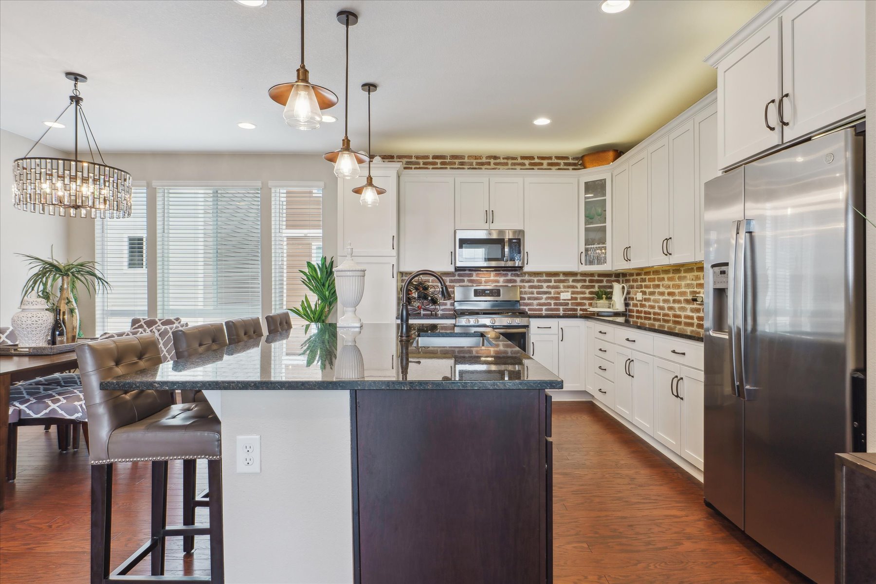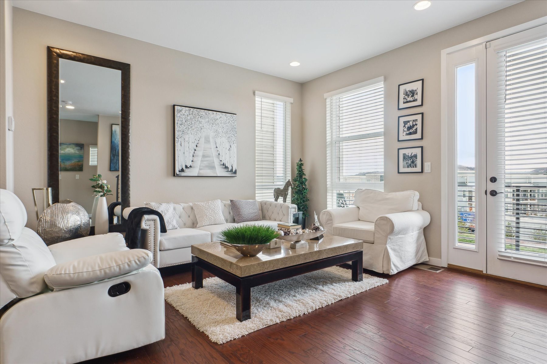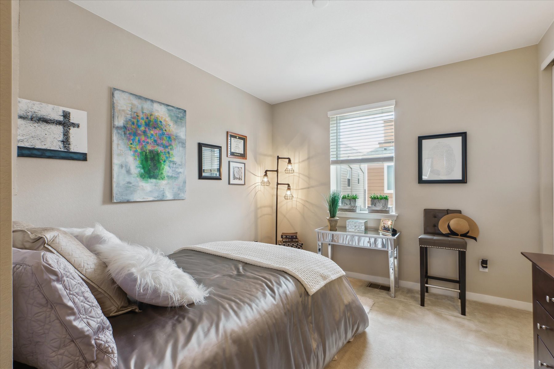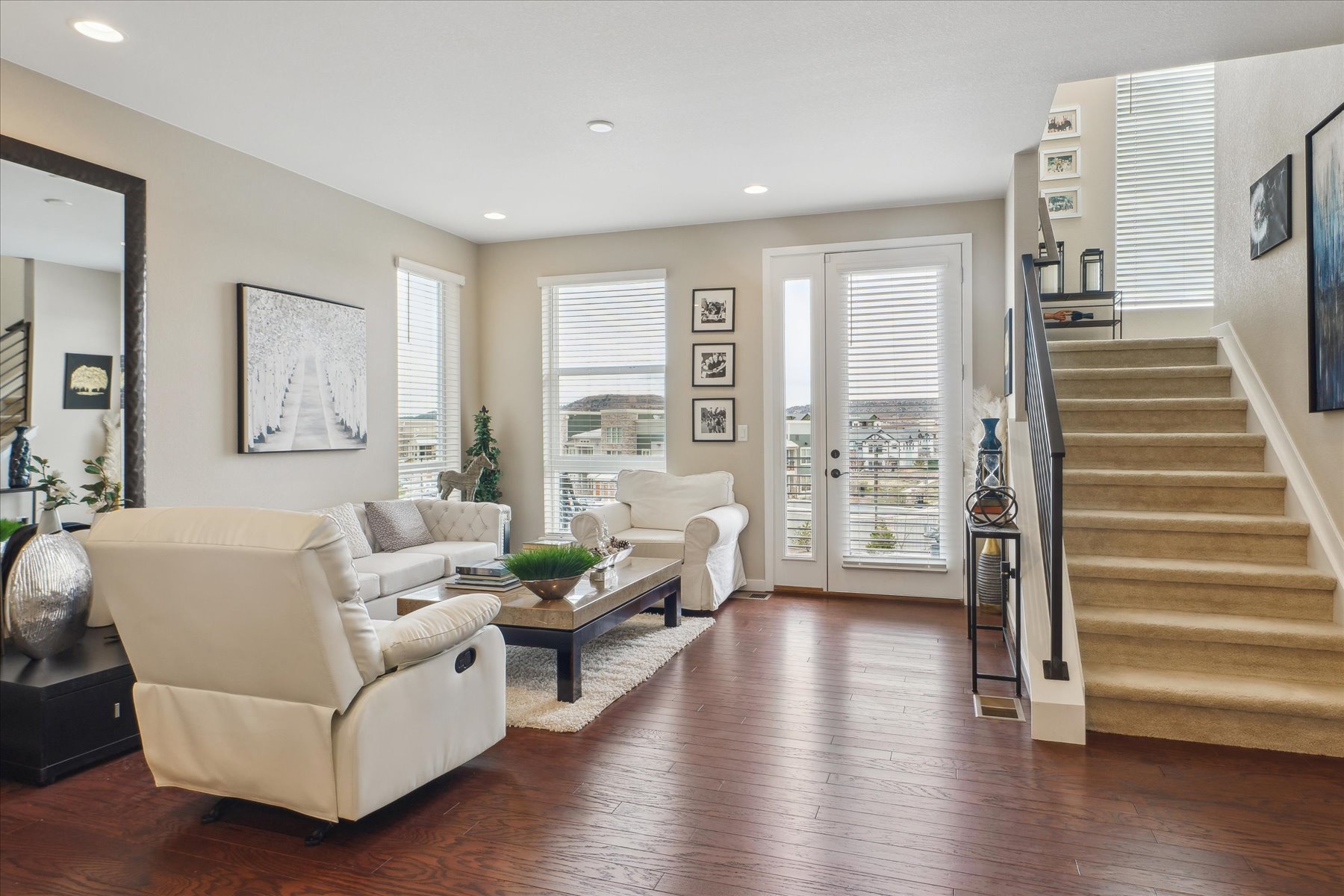 ~ Exceptional Value with this Gorgeous Like-New Home with Numerous Upgrades and High-End Finishes Throughout ~ Each of the three levels has 9 foot ceilings, oversized windows throughout bring in abundent natural light and the stars are the limit on the private roof top deck (12'11" x 23'2") ~ Enter on the east side of the home through the glass paneled front door, into a foyer with access to the 2-car attached garage, as well as an under stair storage closet and bright laundry room ~ The wide and light-filled stairs lead to the great room on the main level of the home ~ With easy flow and lots of natural light, this space is welcoming and comfortable for an intimate gathering or larger get-together ~ An east facing balcony is a quiet spot to relax and enjoy, while the kitchen is the heart of space and well-equipped with 42" cabinets, quartz counters, an island, and stainless appliances ~ The dining space, with a wall of windows, can accommodate a table for 6, in addition to seating at the island ~ A few more stairs brings you to the primary suite, a luxurious warm space to retreat and refresh ~ Tall ceilings and windows encourage the natural light, and the upgraded bathroom is a dream-come-true with 2 closets, high-end fixtures & finishes, dual sinks and a spa shower complete the suite ~ The second bedroom is on this same level and has its own ensuite bath ~ This would make a great office space or guest suite, with its own large window and roomy closet ~ The cherry on top of this home is the roof-top deck with its amazing views ~ This may be your warm weather hang out and entertaining destination as there is space for a seating arrangement and room to barbecue (there is a gas line for this purpose!) and dine ~ This sleek and stylish home is a beautiful option - set a showing today!