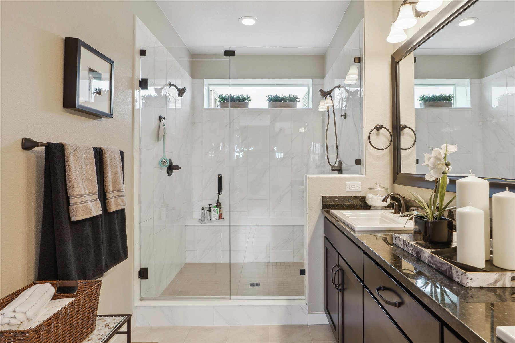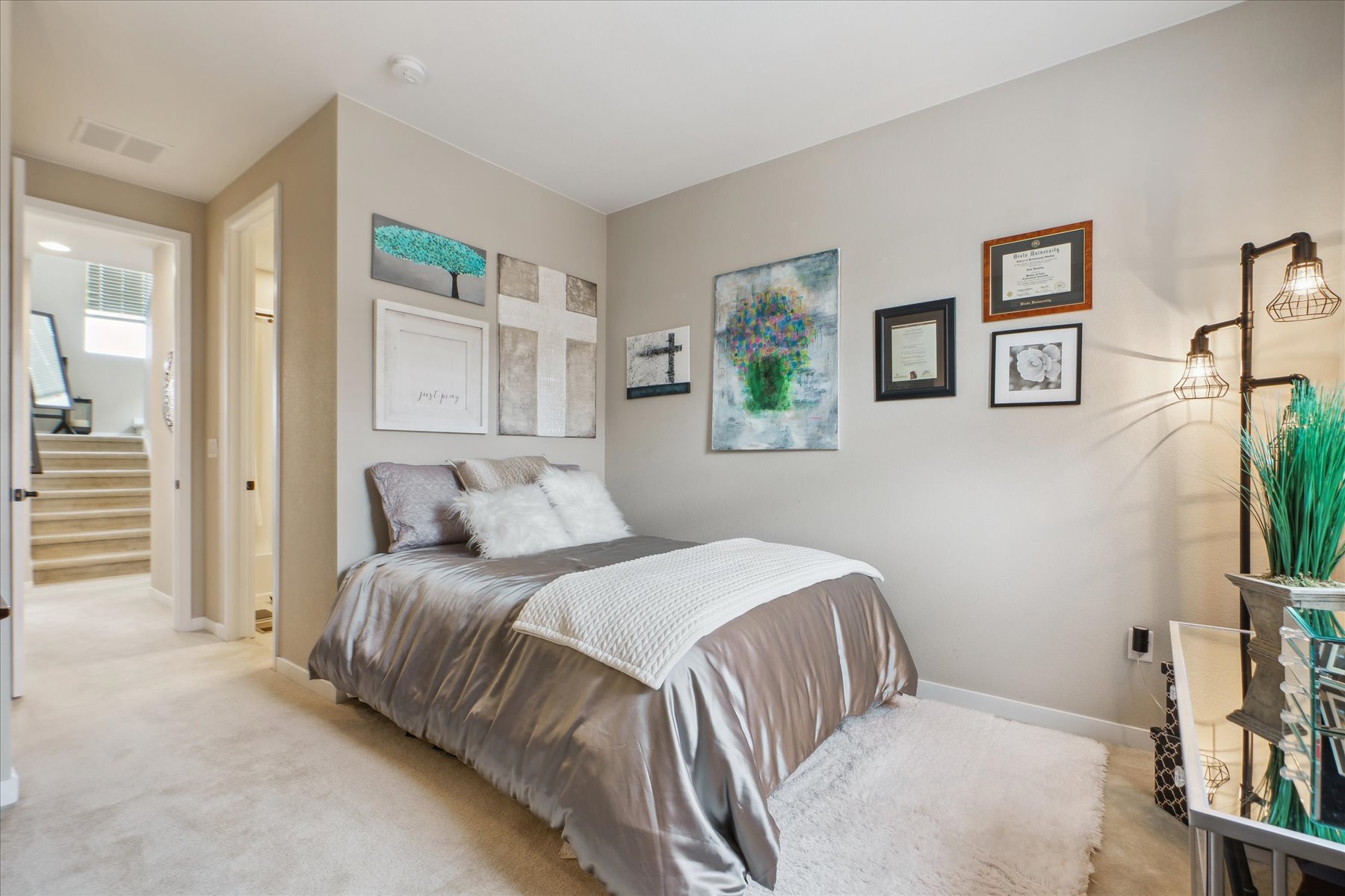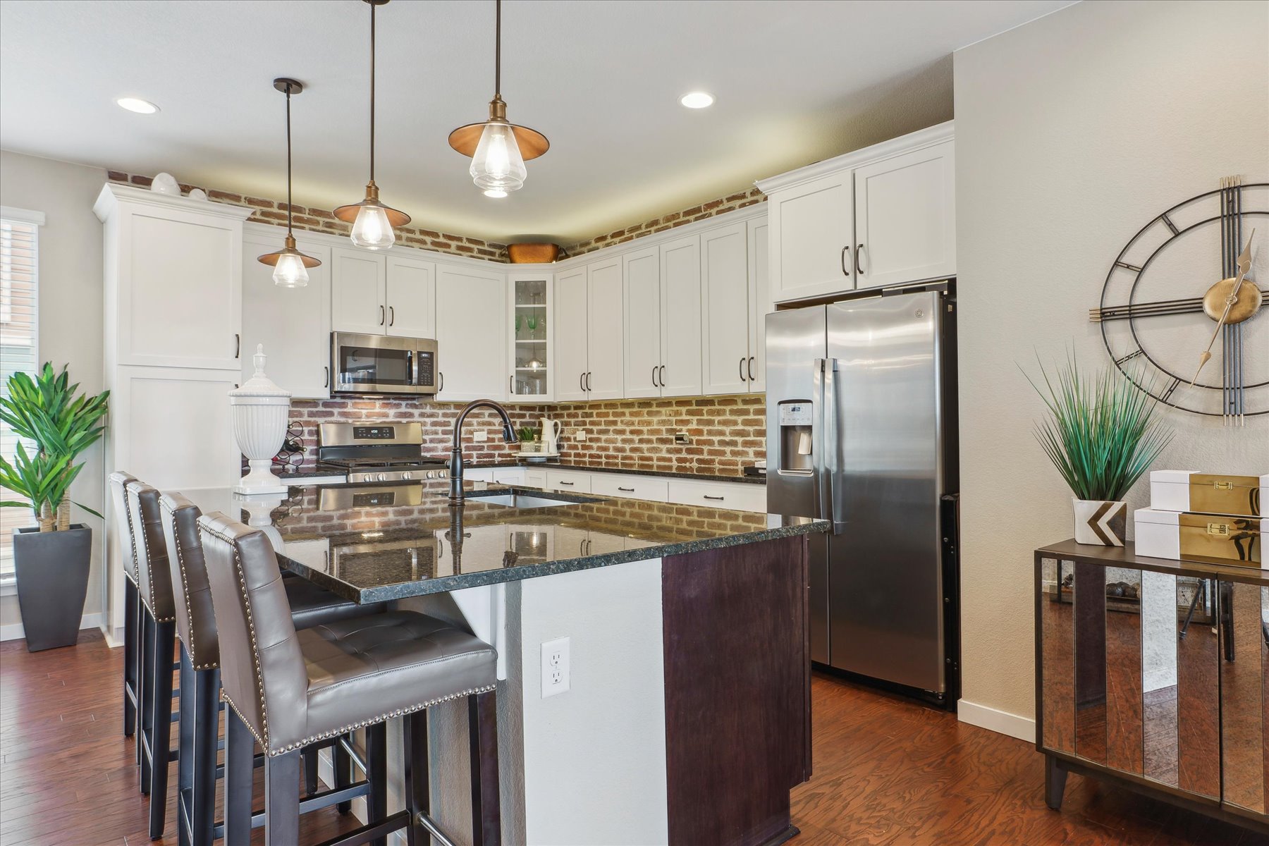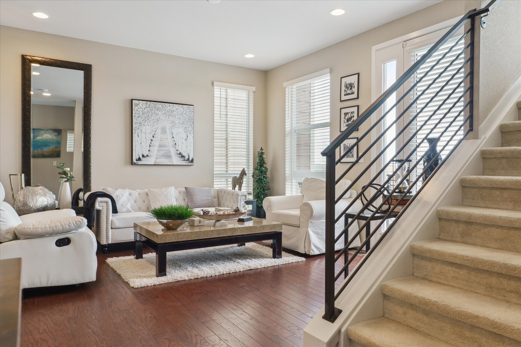 ~ Exceptional Value with this Gorgeous Like-New Home with Numerous Upgrades and High-End Finishes Throughout ~ Each of the three levels has 9 foot ceilings, oversized windows throughout bring in abundent natural light and the stars are the limit on the private roof top deck (12'11" x 23'2") ~ Enter on the east side of the home through the glass paneled front door, into a foyer with access to the 2-car attached garage, as well as an under stair storage closet and bright laundry room ~ The wide and light-filled stairs lead to the great room on the main level of the home ~ With easy flow and lots of natural light, this space is welcoming and comfortable for an intimate gathering or larger get-together ~ An east facing balcony is a quiet spot to relax and enjoy, while the kitchen is the heart of space and well-equipped with 42" cabinets, quartz counters, an island, and stainless appliances ~ The dining space, with a wall of windows, can accommodate a table for 6, in addition to seating at the island ~ A few more stairs brings you to the primary suite, a luxurious warm space to retreat and refresh ~ Tall ceilings and windows encourage the natural light, and the upgraded bathroom is a dream-come-true with 2 closets, high-end fixtures & finishes, dual sinks and a spa shower complete the suite ~ The second bedroom is on this same level and has its own ensuite bath ~ This would make a great office space or guest suite, with its own large window and roomy closet ~ The cherry on top of this home is the roof-top deck with its amazing views ~ This may be your warm weather hang out and entertaining destination as there is space for a seating arrangement and room to barbecue (there is a gas line for this purpose!) and dine ~ This sleek and stylish home is a beautiful option - set a showing today!