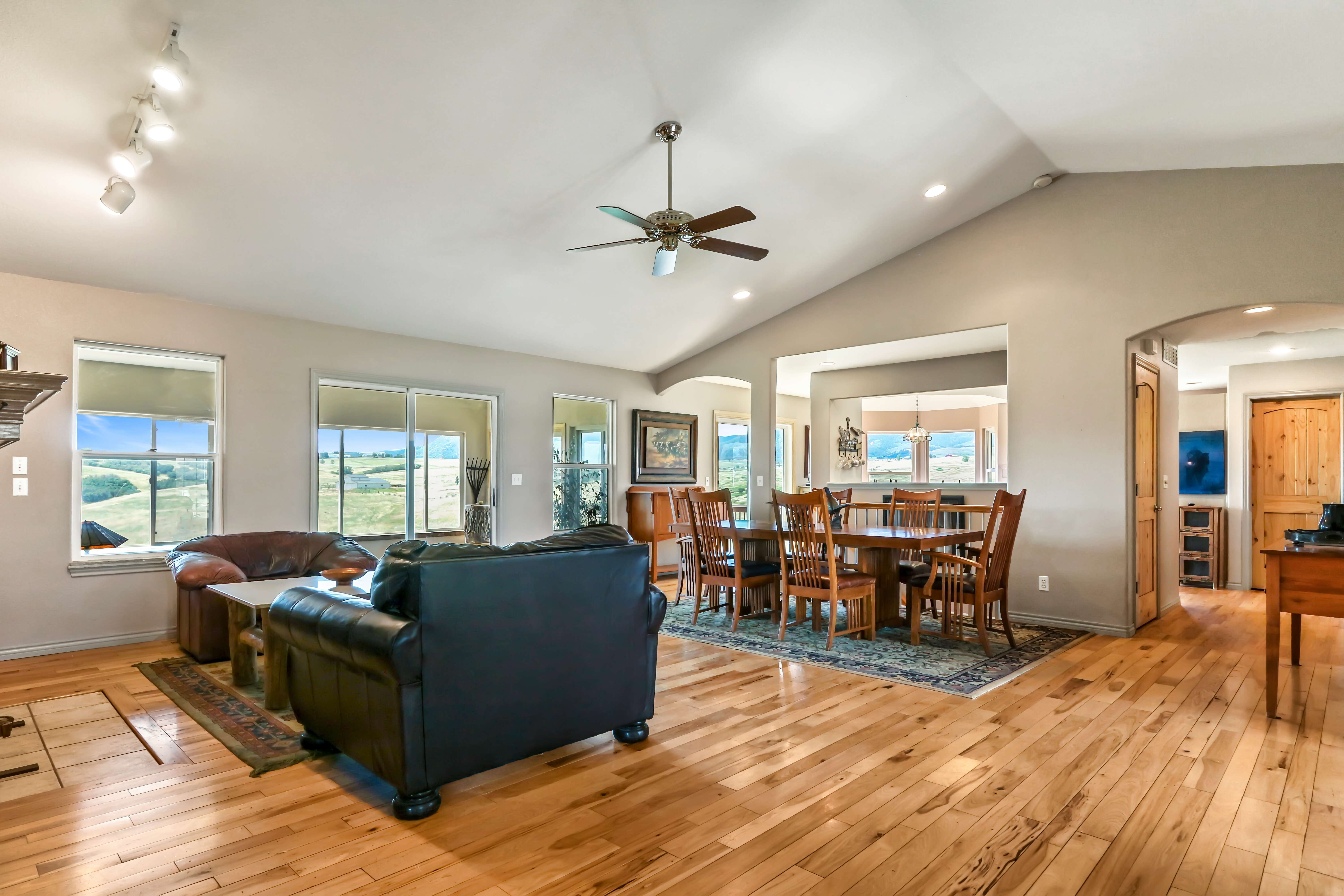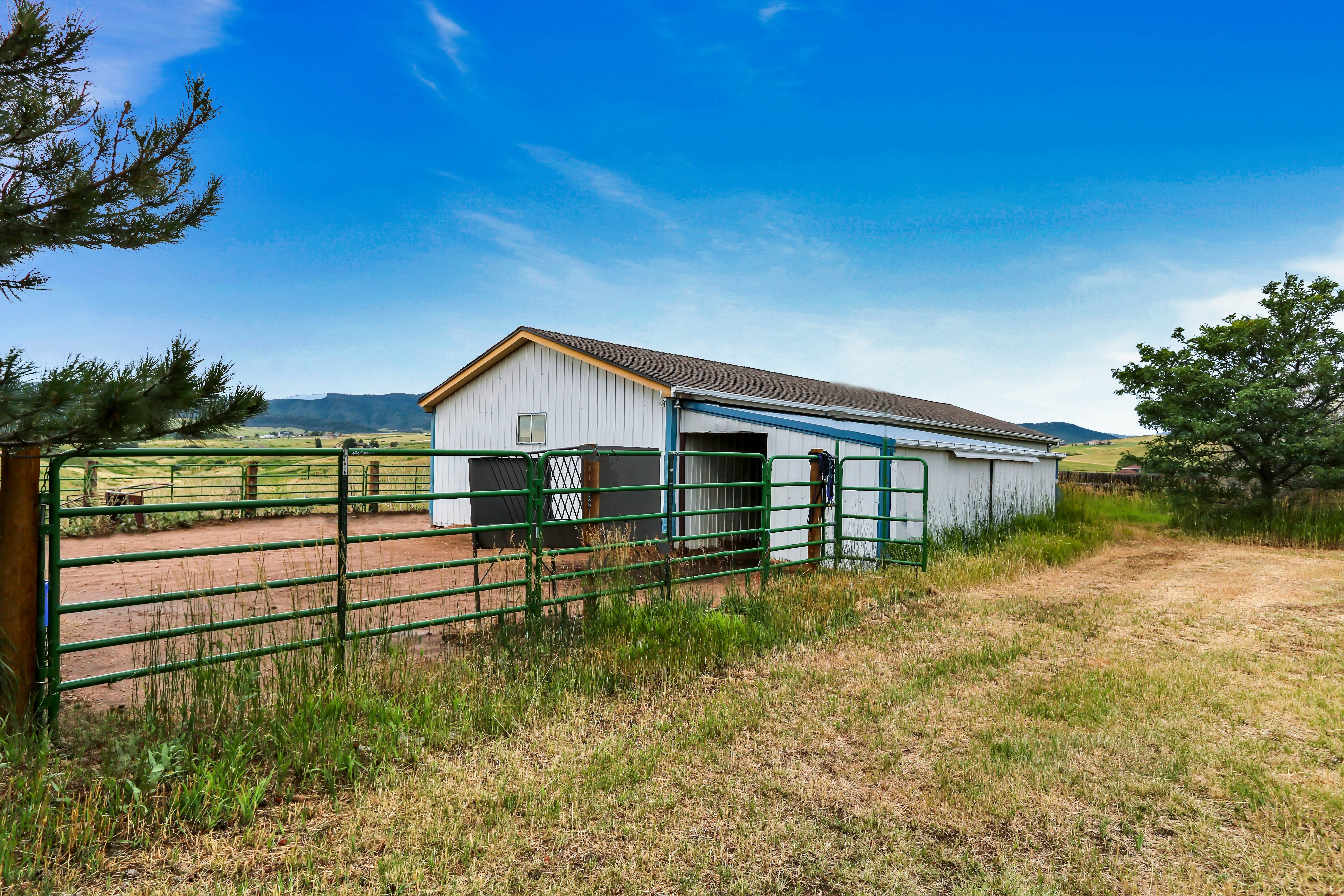** 35-Acre Horse Property Nestled in the Foothills with Sweeping Views in All Directions ** This single level home with a walk-out basement has 5 Bedrooms & 4 Bathrooms and is minutes from Sedalia, Santa Fe and I-25 ** The property sits atop a hill, up a paved private road, with a gated driveway, and includes a 10,000 sq ft Arena equipped with stalls, hay storage, and tack room, a Pole Barn, Corral/Round Pen and both a 3-Car and 2-Car attached garage ** Enter through a custom front door and into the great room space - with vaulted ceilings, hardwood floors and views to the South ** The fireplace wall is a focal point for the combined living and dining spaces, and a door leads out to the Sun Room which offers stunning views ** Step through to the Kitchen featuring ample storage & prep space and abundant natural light ** There is a breakfast nook and an adjacent pantry, with access to the laundry room and 3-car garage close by ** Double doors off the Living Room lead to a flex space with access to the front courtyard, perfect as a den or office ** The hallway leads to the Primary Suite, as well as 2 additional bedrooms and a full bath ** In the basement is a Family Room, access to the 2-car garage, and a 2 Bedroom Apartment, ideal for multigenerational living ** The apartment has a separate exterior entrance, complete with a spacious patio, as well as a laundry room with access to the 2-car garage ** Property is listed $300K below recent appraised value, is fully fenced, has a newer roof, solid core doors, views, privacy and possibilities galore ** See Supplements for Additional Information ** Set a showing today for this Must See Opportunity **