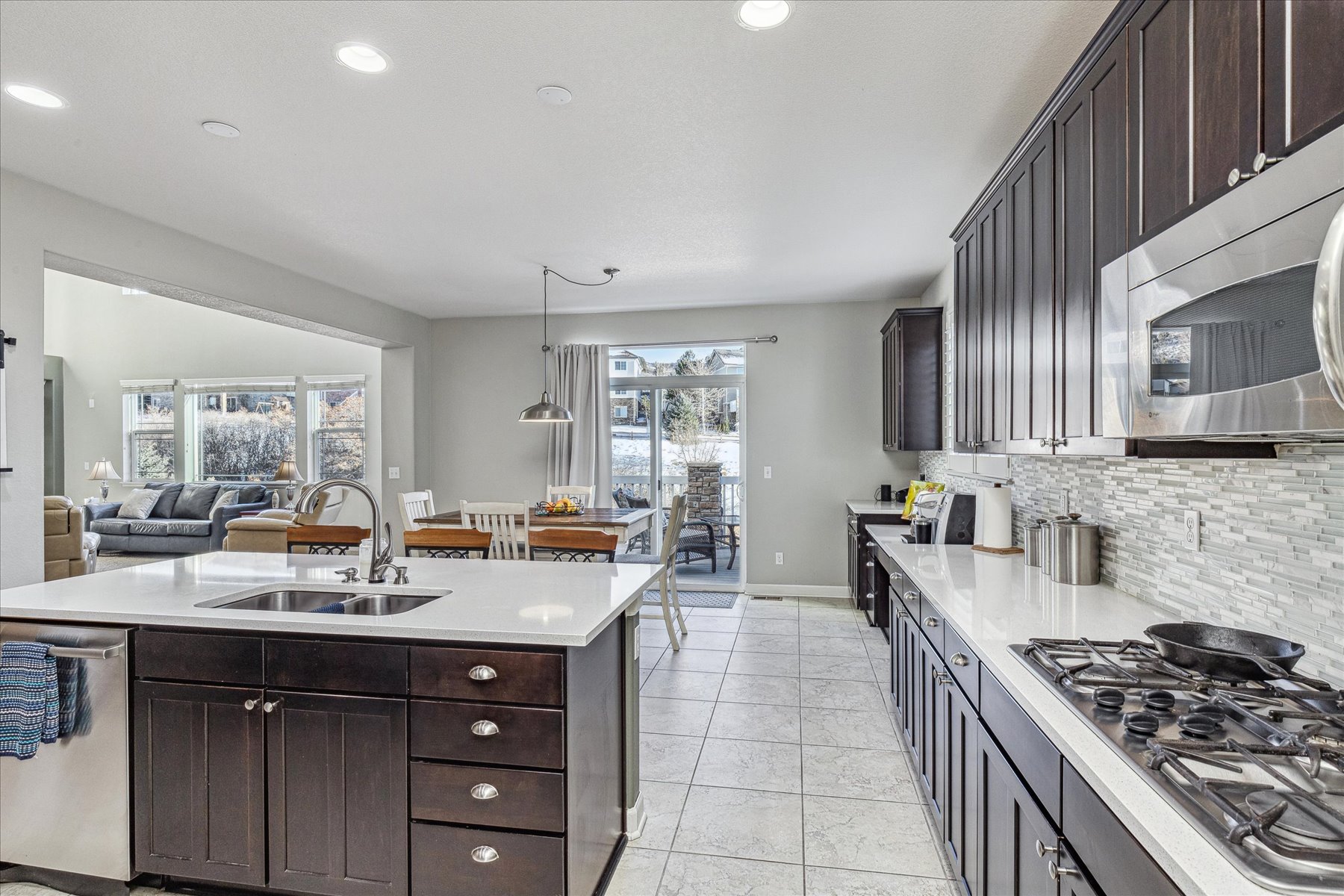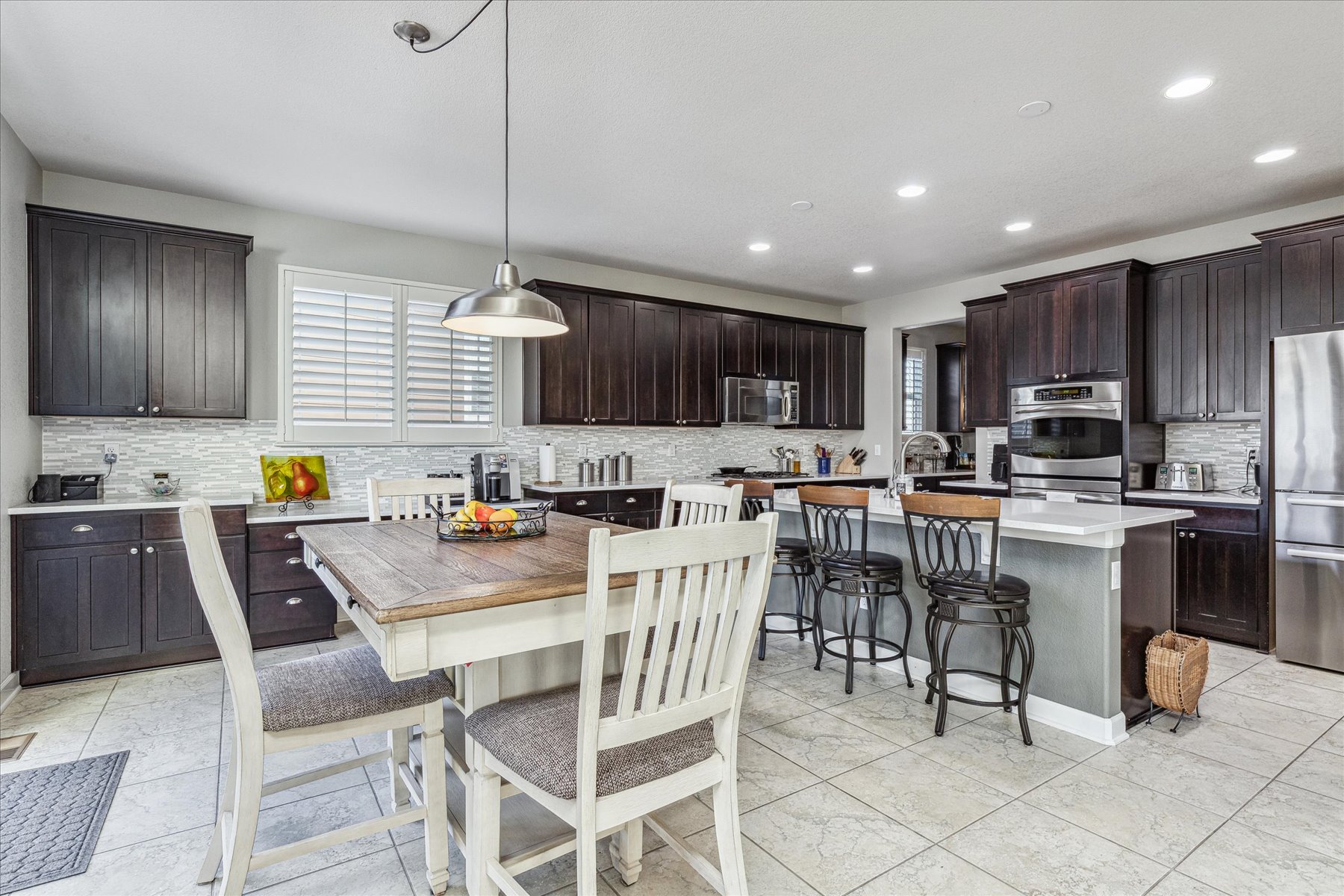 ** Beautiful 4 Bed + 4 Bath home in the desirable Briscoe Ranch neighborhood backs to Open Space and is walking distance to the Ridgeline Trail ** The main floor features an open floor plan with the Living Room and Kitchen placed at the rear of the home to take advantage of the stunning open space views ** Kitchen has tons of space for enjoyable meal preparation and entertaining, with upgraded appliances and high-end finishes ** Plenty of counter space and storage extend to the double door pantry ** The eat-in Kitchen can accommodate a large table for informal dining and the formal Dining Room is steps away through the butler's pantry ** Convenient sliding door access to the deck and yard bring smooth flow for family and friends ** A main floor office with double glass doors is a private work from home space, or den ** Both garages are accessible from inside the home, and the 1-car has been used as a workshop, complete with finish and heat ** Upstairs the floor plan is split with the Primary suite to the right and the three additional bedrooms to the left ** The Primary Suite also enjoys the open space views and comfortably equipped with a tray ceiling, several windows, three closets and a door to the 5-piece ensuite bath ** This bathroom feels like a retreat with a roomy soaking tub and plenty of storage and counter space ** One of the secondary bedrooms has its own ensuite bath, making it a perfect place for guests ** The two remaining bedrooms share the hall bath, complete with tub/shower and dual sinks ** This home has an unfinished walk out basement, with lots of light, sliding door access to the fenced in yard, and room for whatever finish plans you can dream up ** The Grange Community Center with pool is nearby, as well as parks and playgrounds ** Recent updates include: Water Heater (2022); Whole House Fan (2019); Finish & Heat in the 1-car Garage (2019); Ceiling Fans (2021); Dishwasher (2020); Beverage Refrigerator (2021)