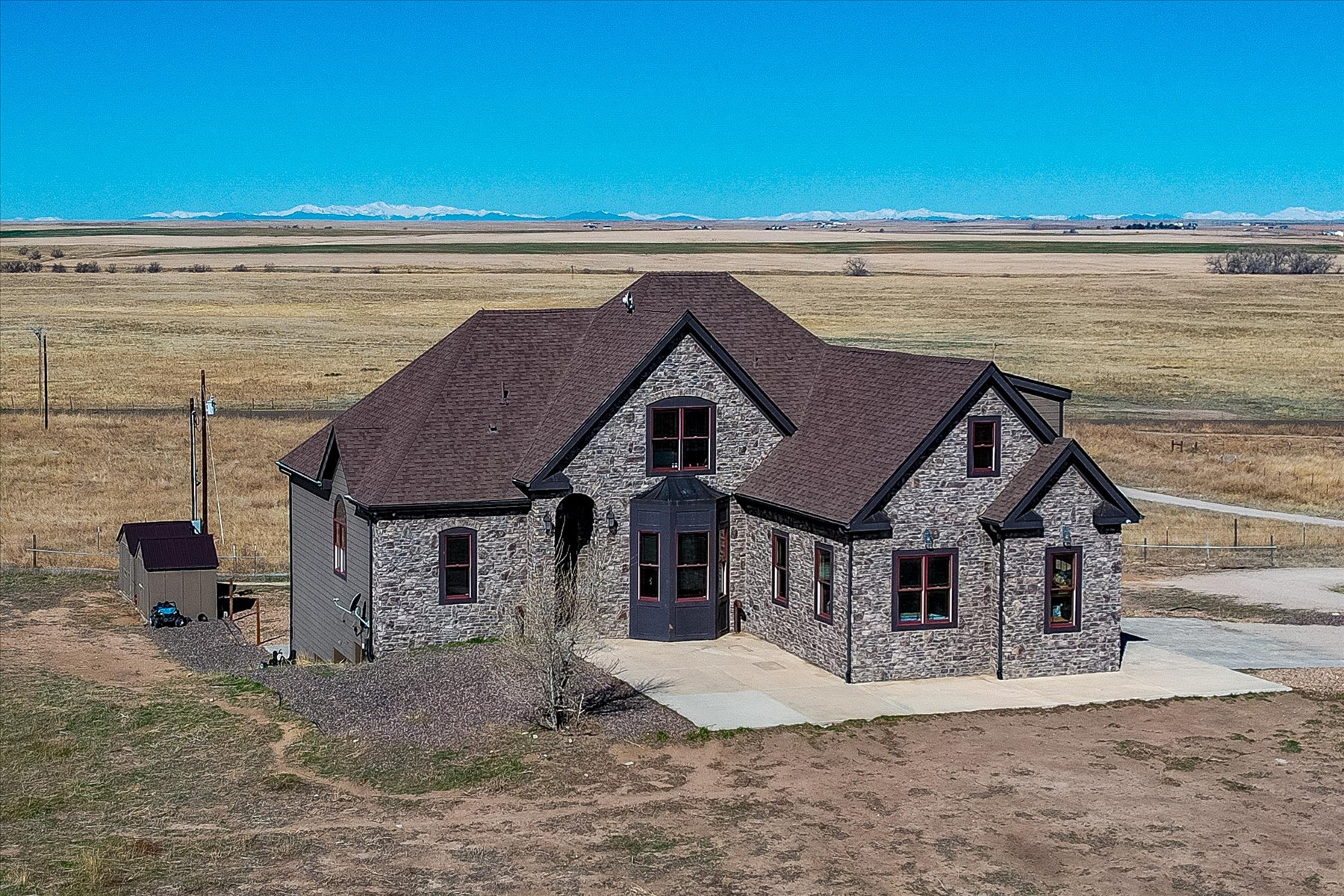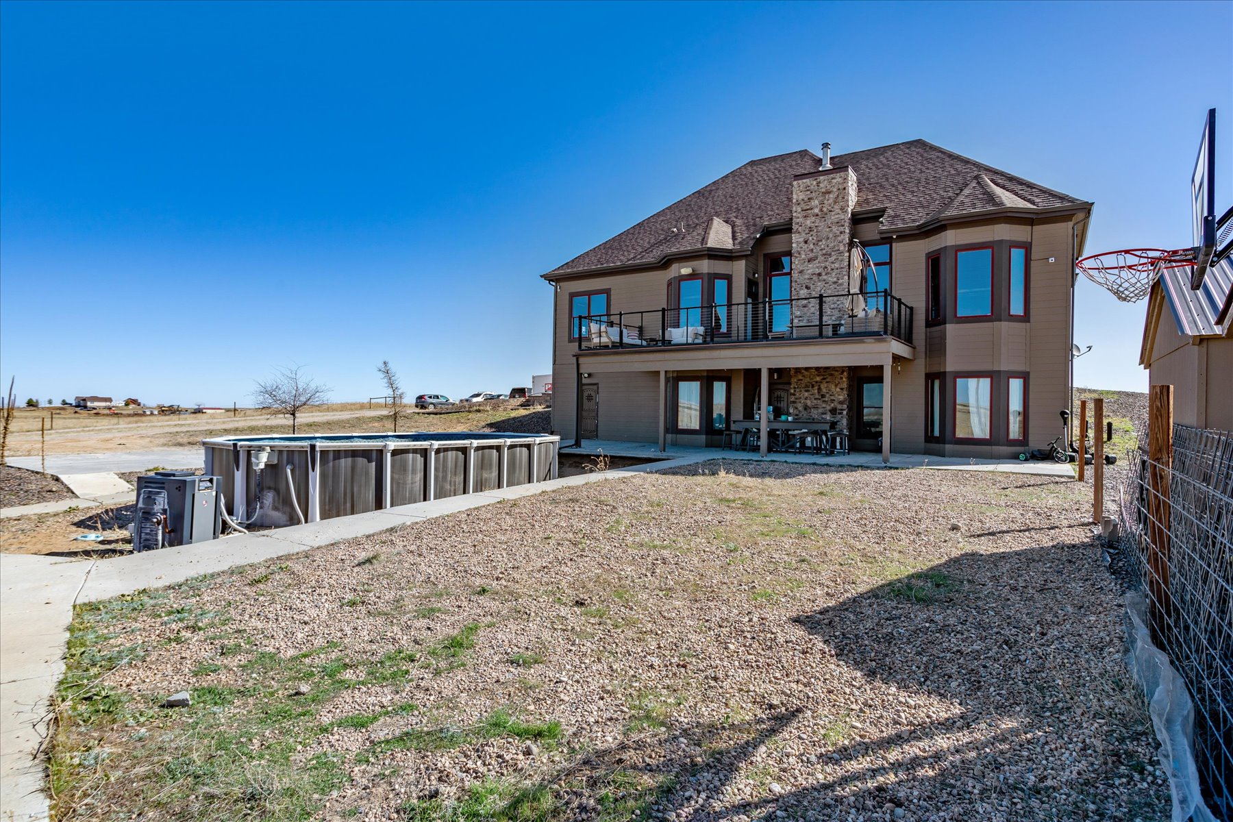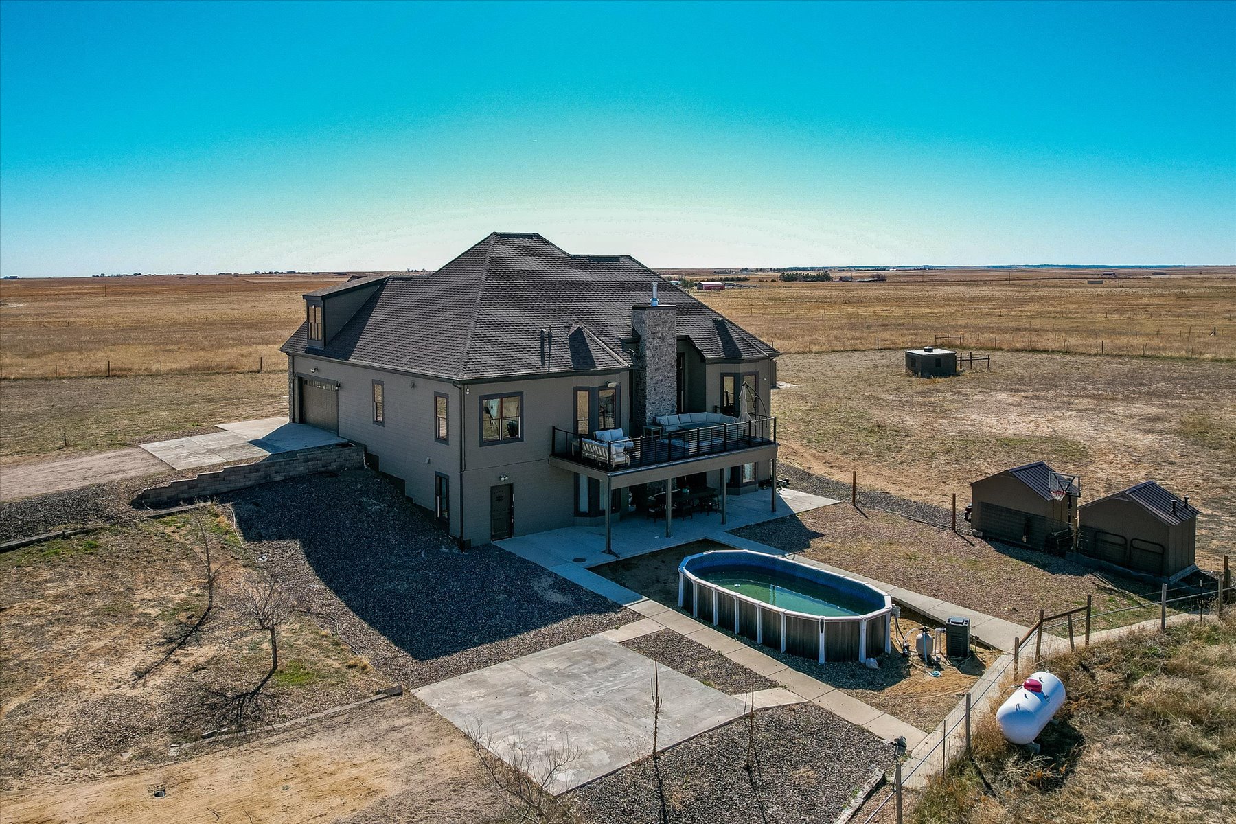** Do you Dream of Wide Open Space? ** This 36+ Acre Property with Stunning 6 Bed + 4 Bath Home Awaits You and Your Dreams!! ** Enter from the patio on the East side of the home and step into a welcoming great room with tall ceilings, large windows and tile floors ** There is a space for formal dining, just off the entry, which takes advantage of the light and views to the East through a bay window, and flows seamlessly into the Living Room with its 13 foot ceilings ** This is the heart of the home - open to the kitchen and dining areas perfect for gathering the family ** Tall windows bring in the western vistas, while the wood stove makes for cozy evenings ** A second eating area is embraced by west-facing windows, and is open to the kitchen and great room and has access to the spacious deck ** The kitchen is equipped with granite counters, cabinets to the ceiling and adjacent pantry storage with access to the elevator, and washer/dryer hookups ** A full bath and two bedrooms are around the corner - each with large windows and closets ** The primary bedroom suite is on the opposite side of the Living Room and includes a bay window, walk-in closet and a 5-piece bath, complete with radiant floor heating ** Upstairs are two bedrooms, each with unique architectural features & sweeping views, and another full bathroom ** The basement has walk-out access to the rear patio and pool area, as well as another bedroom and bathroom ** Rounding out the basement are a media room, laundry, a safe/storage room and an indoor pet room ** Explore the fenced outdoor space with its expansive West-facing deck, above ground pool, and several outbuildings ** The lot is mostly flat and fully fenced - build an elaborate playset, start a hobby farm, enjoy the open space and dream big ** See Covenants in supplements for additional information ** Minutes from the conveniences of Strasburg with shopping & schools, and easy access to I-70 ** Set your showing today!!