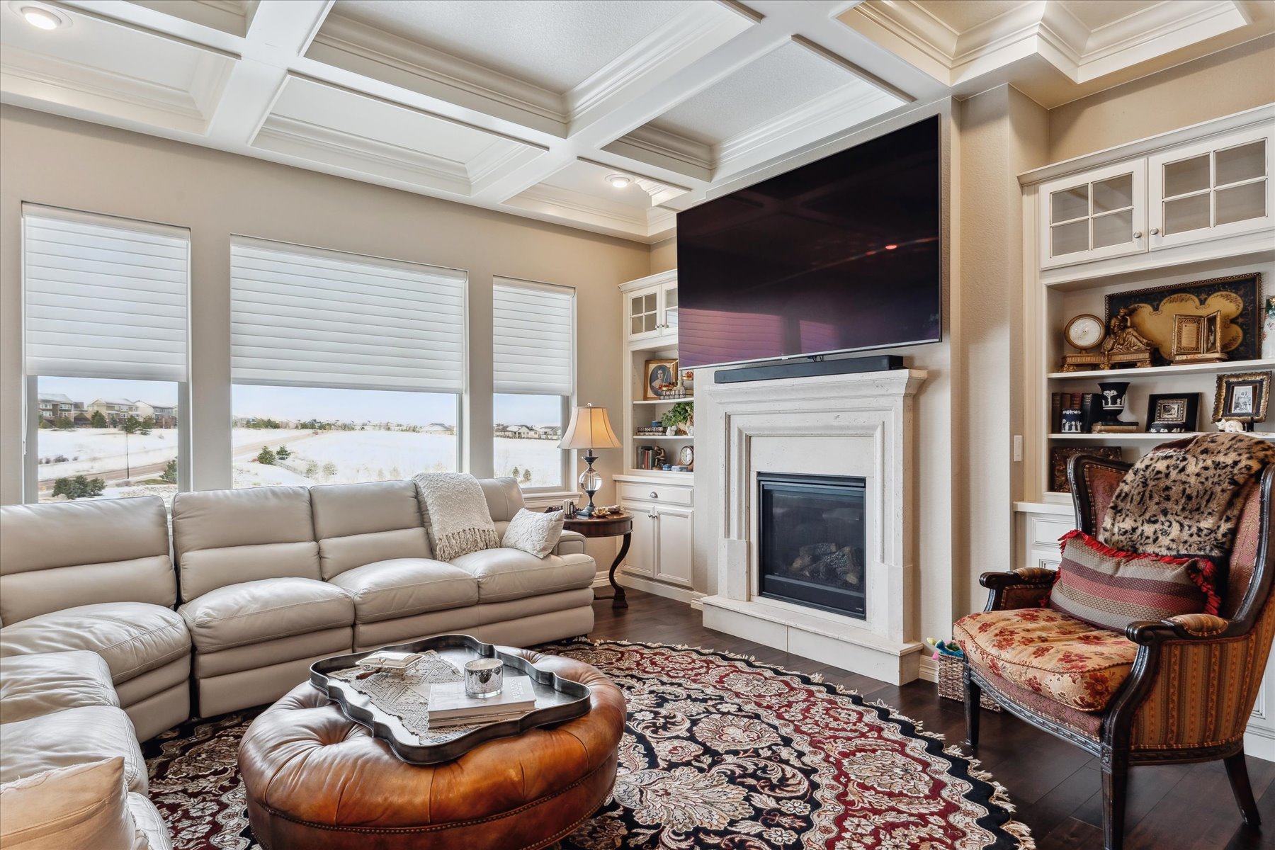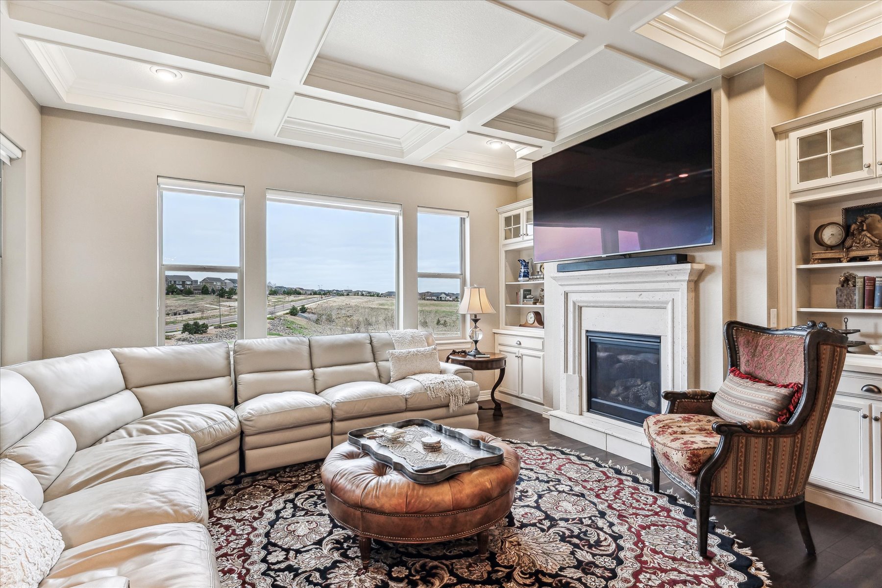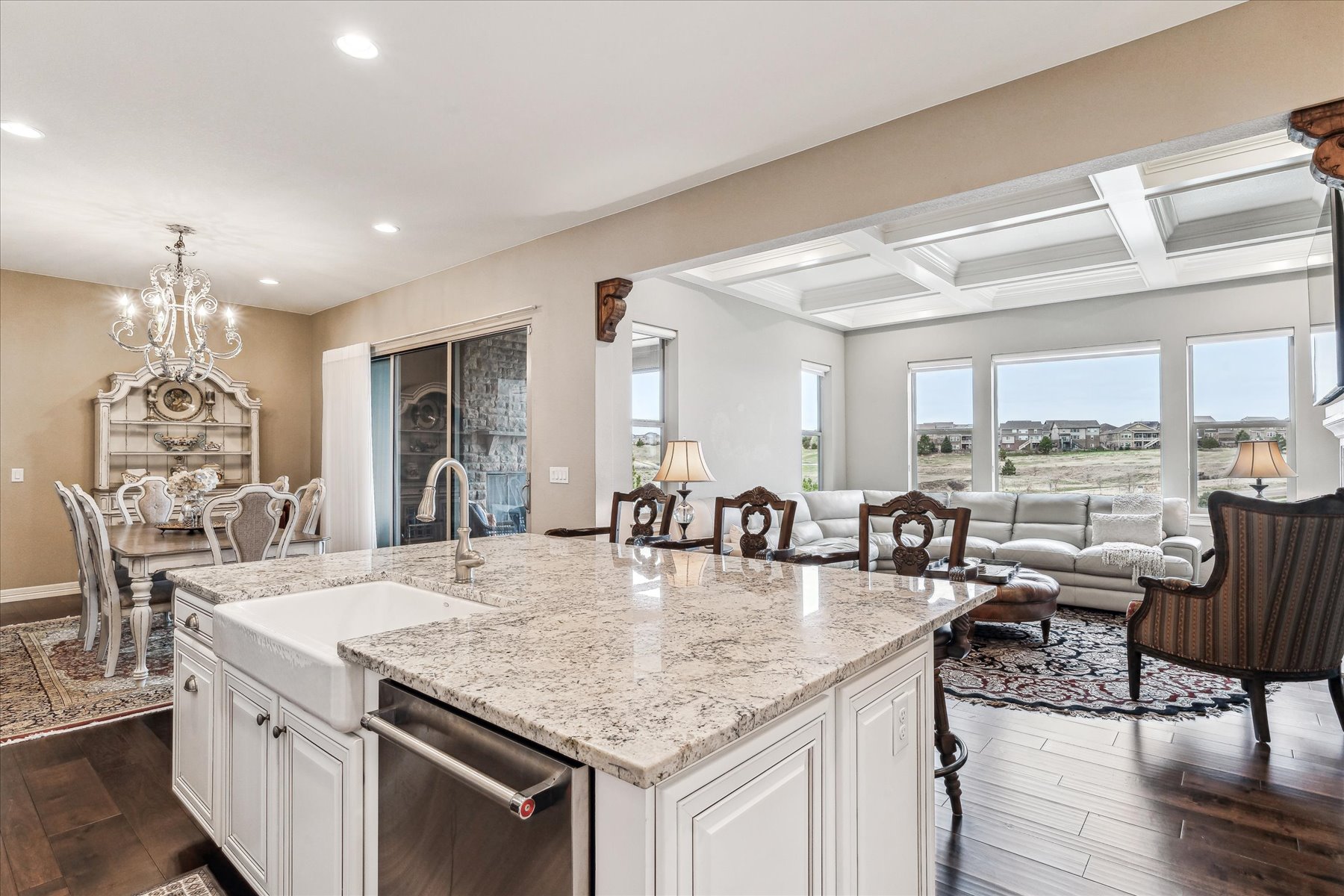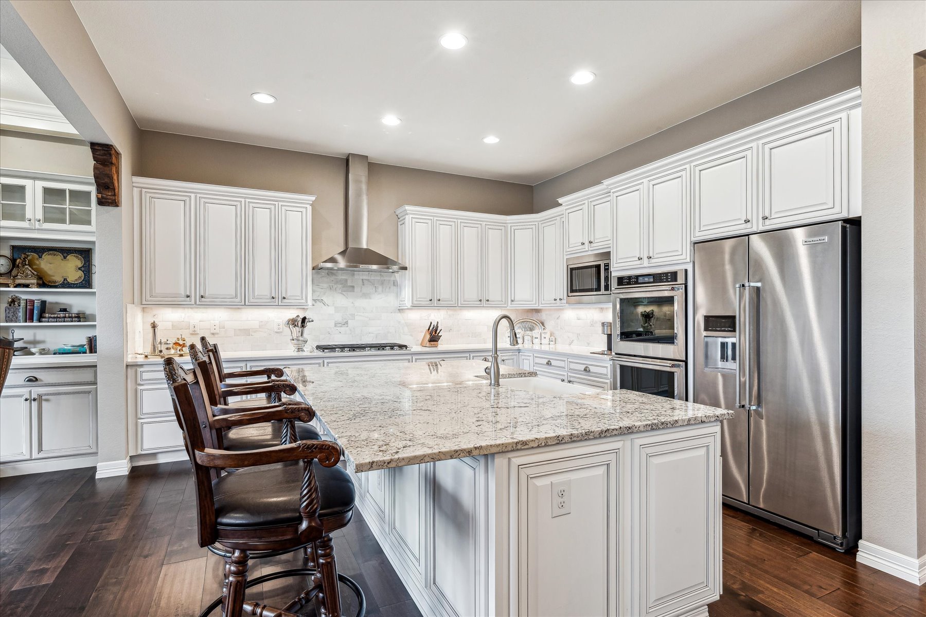 ~ AMAZING OPPORTUNITY on this Stunning 5 Bedroom + 5 Bath Home that has been Impeccably Designed and Maintained ~ From the Front Door to the Views, this home feels like a Model Home with High End Finishes throughout, including Wood Floors, Hunter Douglas Sheer Shades, Quartz Counters, Solid Wood Interior Doors, Upgraded Appliances, Fixtures and Lighting ~ The foyer rises to meet guests at the door with 10 ft ceilings, crown molding and wainscot detailing ~ A cozy bedroom with an attached full bath is tucked to the side, followed by the elegant powder bath, and a roomy office ~ Follow the hall past the open staircase, complete with chandelier, and the grand formal dining room, to the welcoming heart of the home ~ The well-appointed kitchen has everything a chef could need with a walk-in pantry, 2 wall ovens, 5-burner gas range with vent hood and plenty of cabinet & counter space ~ The island is the place to prep - open to the living room, informal dining room and with easy access to the covered deck ~ The openness of the space ensures the cook will never miss the party ~ The living & dining rooms are just the right size for large groups or intimate gatherings ~ The deck has been carefully designed for maximum enjoyment of the amazing views, through most of year, cozy up to the gas fireplace on chilly evenings, or enjoy shady relaxing on hot days ~ A short flight of stairs leads to the patio and professionally landscaped yard, complete with hot tub ~ The primary suite is an oasis, welcoming and private ~ The walk-in closet is accessible through the 5-piece bathroom, which is equipped with a soaking tub, walk-in shower and dual vanities ~ Another secondary bedroom, with its own bath, and the laundry room are complete this level ~ Take the stairs to the enormous basement with plenty of light from the garden level windows, and plenty of space for all ~ There are 2 additional bedrooms, plus the wet bar, a bonus room and another bath ~ See this one today, set a showing!