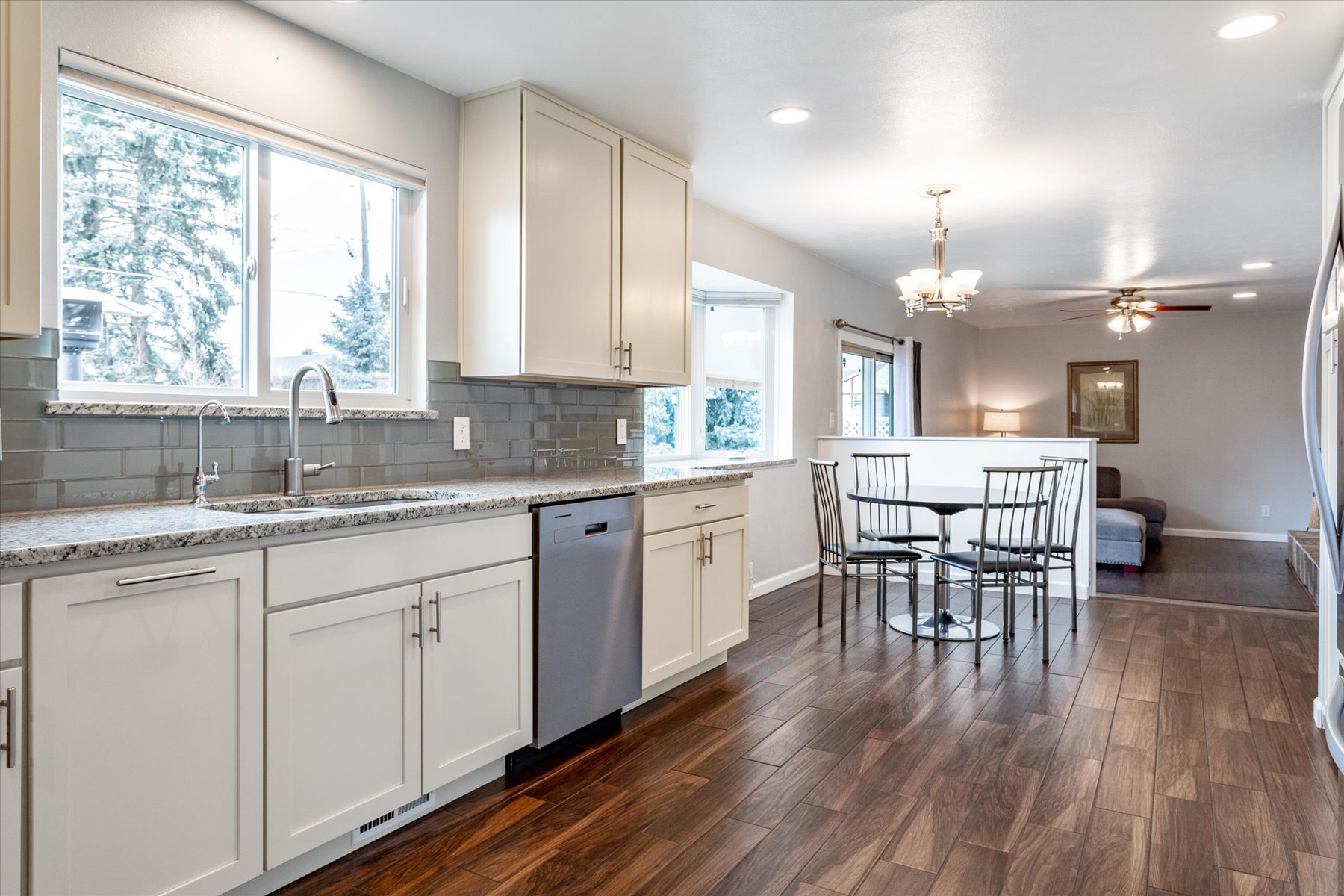 ~ Amazing and Meticulously Maintained Home with 4 Beds & 4 Baths on a Large Lot with Mature Landscaping ~ From the welcoming front porch to the covered back patio, the Sellers have lovingly updated and upgraded and this home throughout their ownership ~ The spacious living room is at the front of the home which opens into the formal dining room, large windows provide natural light ~ The kitchen opens from the dining room, has been completely remodeled and has windows to the fully fenced back yard ~ Bright and well-equipped, the kitchen has all the storage and counter space a home chef could want ~ The adjacent nook allows for a good-sized table for informal dining and is open to the family room ~ With a wood-burning fireplace, the family room is a cozy place to gather, and has built-in storage ~ A convenient and stylish guest bath completes this floor ~ Upstairs are two secondary bedrooms, each with ceiling fans and hardwood floors, and a recently remodeled shared bath ~ The primary suite is at the end of the hall for increased privacy and has room for a desk or seating area, with an attached remodeled ensuite bath ~ The basement has a bright and open bonus room, perfect for ping pong or pool, with a handy wet bar for entertaining ~ The fourth bedroom is cute and conforming and is equipped with an updated ensuite 3/4 bath ~ Check out the fenced-in back yard, complete with an above-ground pool (2021), playset and storage shed ~ The covered patio is the perfect spot to relax and entertain most of the year ~ Recent updates include: Basement Windows (2017), South and West fiberglass replacement windows (2020), Exterior Paint (2020), Stair Railing (2022), Upper Level Bathrooms (2022), Dishwasher (2023) ~ Located in the coveted Hampden